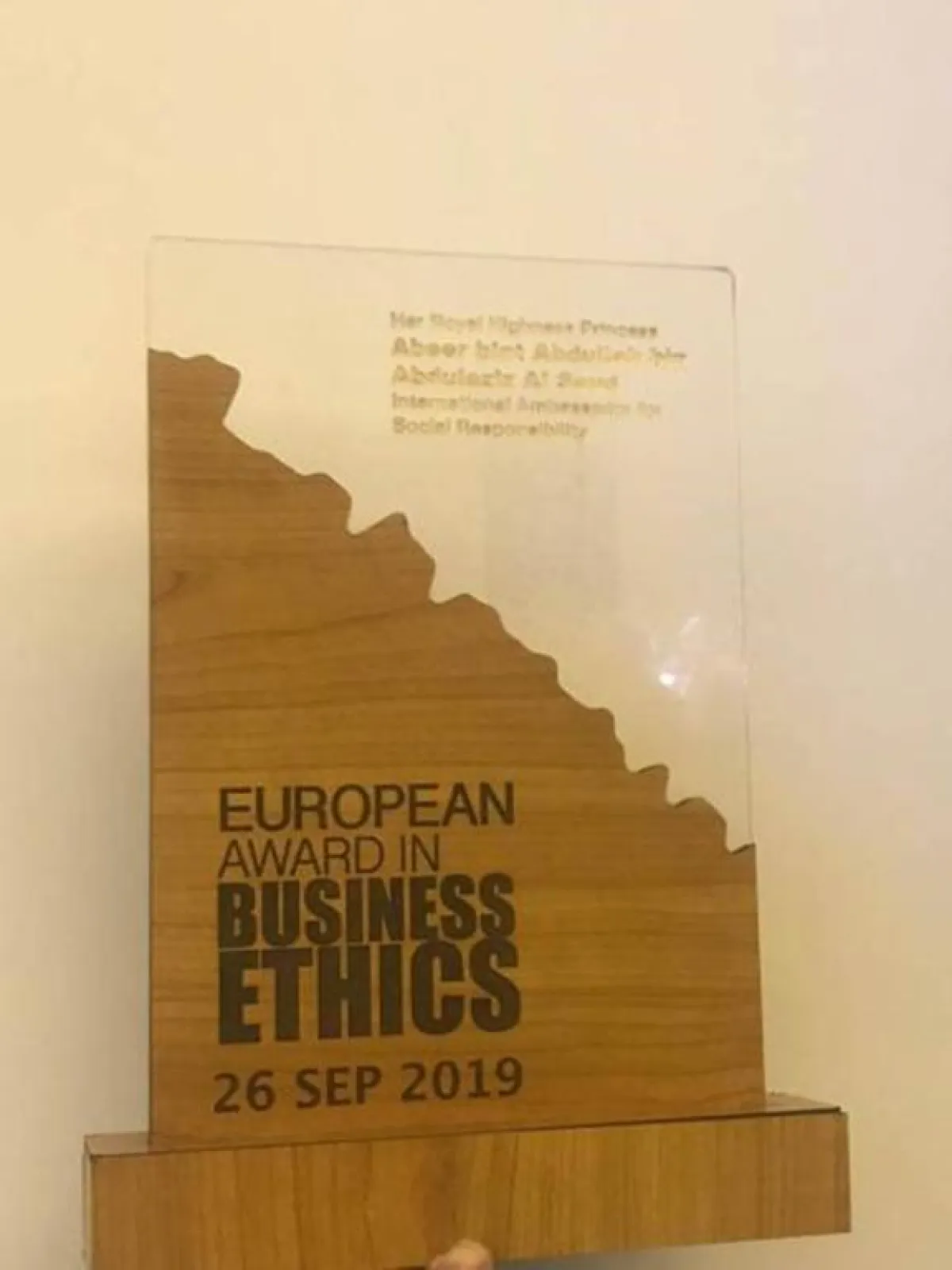 منح الكونجرس الدولي للمسؤولية المجتمعية، الأميرة عبير بنت عبدالله بن عبدالعزيز السفير الدولي للمسؤولية المجتمعية، الجائزة الأوروبية في مجال أخلاقيات العمل؛ تقديراً لجهودها الكبيرة في المسؤولية الاجتماعية وارتباطها بأخلاقيات العمل.