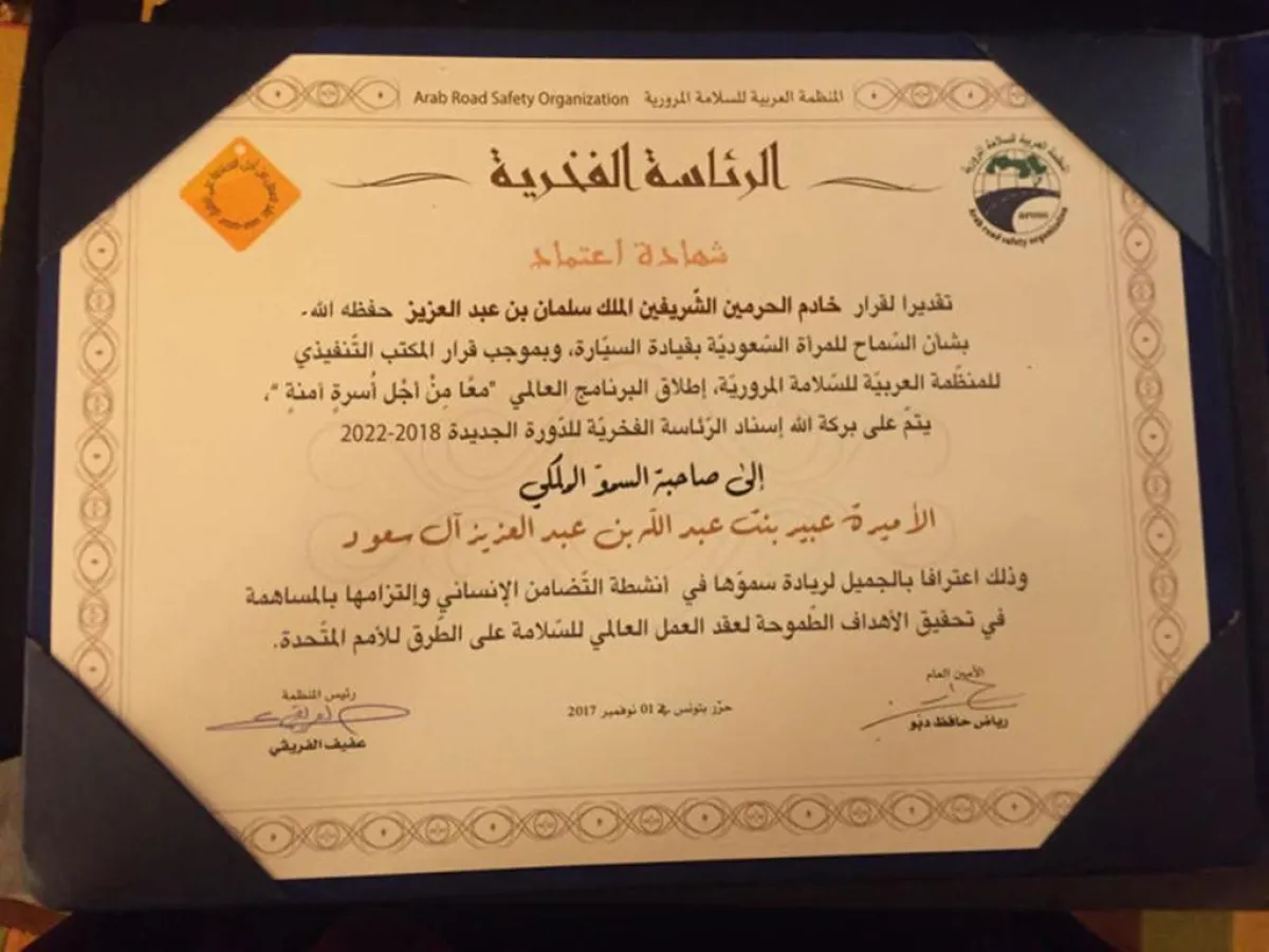 منصب الرئيس الفخري للمنظمة العربية للسلامة المرورية.