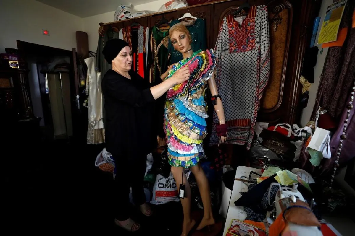 وترى مصممة الأزياء الفلسطينية مها شلطف، قيمة في العلب والأغطية المعدنية المهملة ستجعل منها قطعة أساسية في ثوبها التالي.