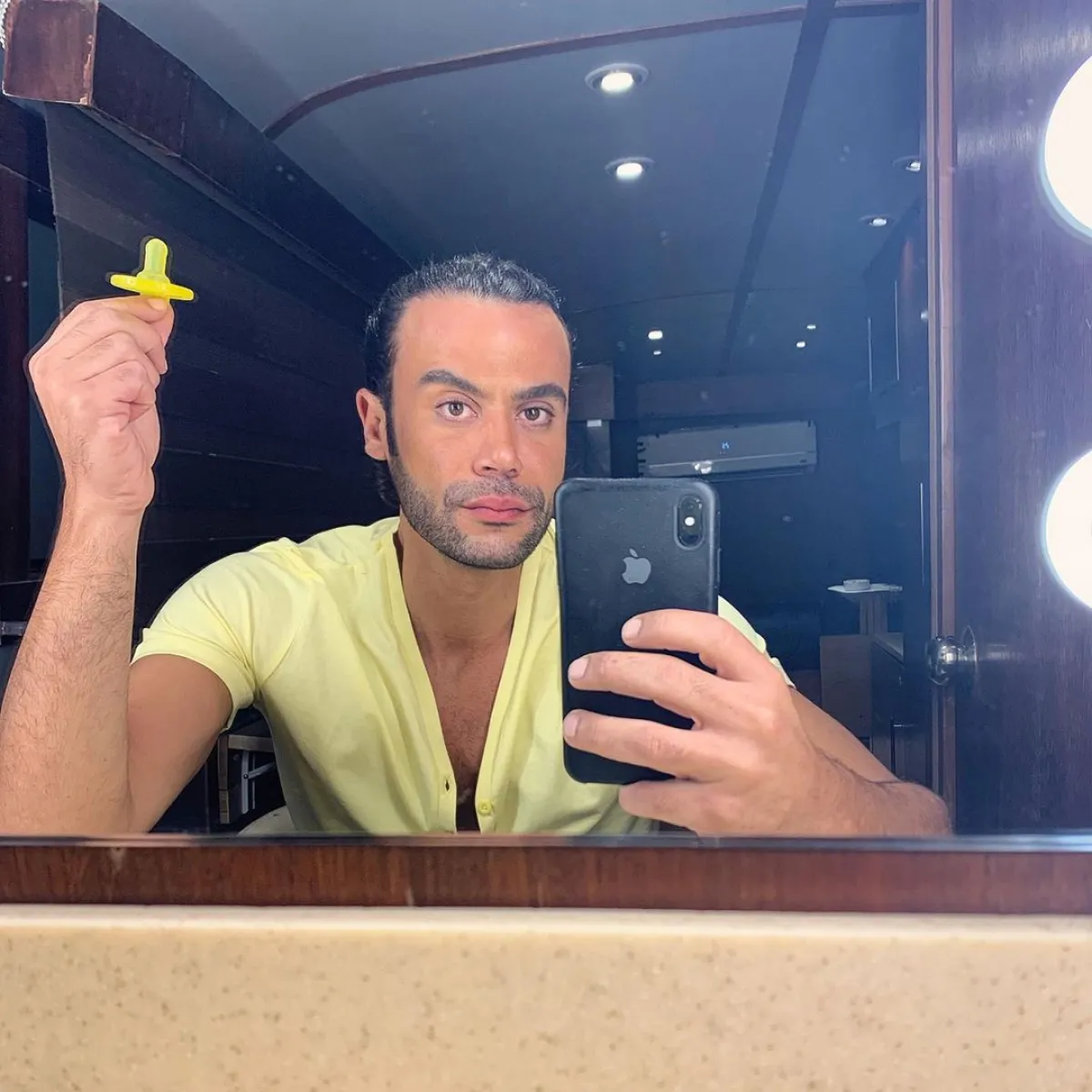 وكشف محمد إمام من خلال هذه الصورة، عن أحد المواقف الطريفة التي تعرّض لها بسبب طفلته خديجة، حيث ظهر بالصورة وهي يُمسك بيده إحدى الأدوات التي تستخدمها طفلته، وعلق على الصورة وقال: "يعني إيه أبقى في التصوير وأفتح شنطة الشغل بتاعتي ألاقي التيتينة دي، لا وكمان لايقة مع اللي أنا لابسه".