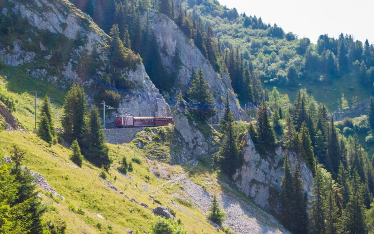 وفي "هوهيويغ"، قطار يأخذ السائحين في رحلة حول الأماكن السياحية في إنترلاكن.