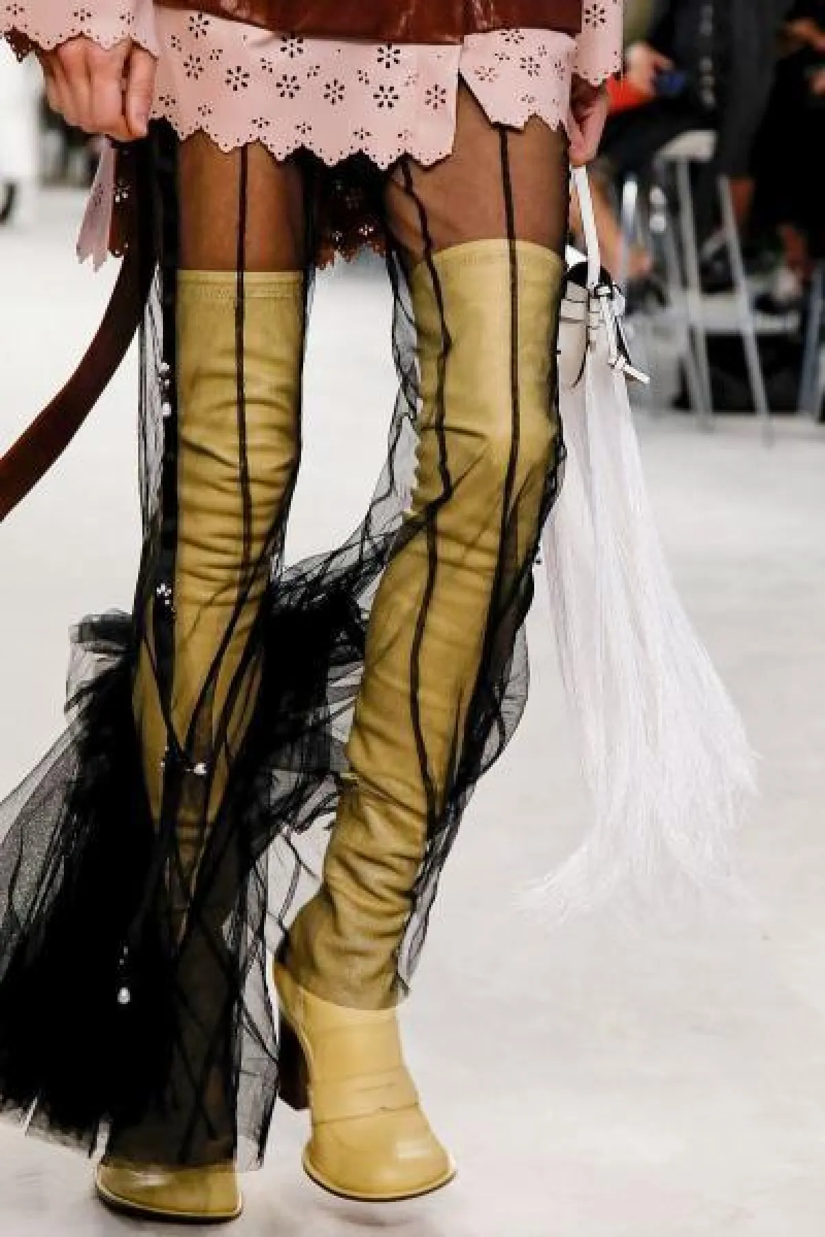 وبرز الحذاء الأبيض بالرقبة الطويلة مرّة أخرى في عرض أزياء لويفي Loewe، فضلاً عن الحذاء الأصفر بنفس التصميم.