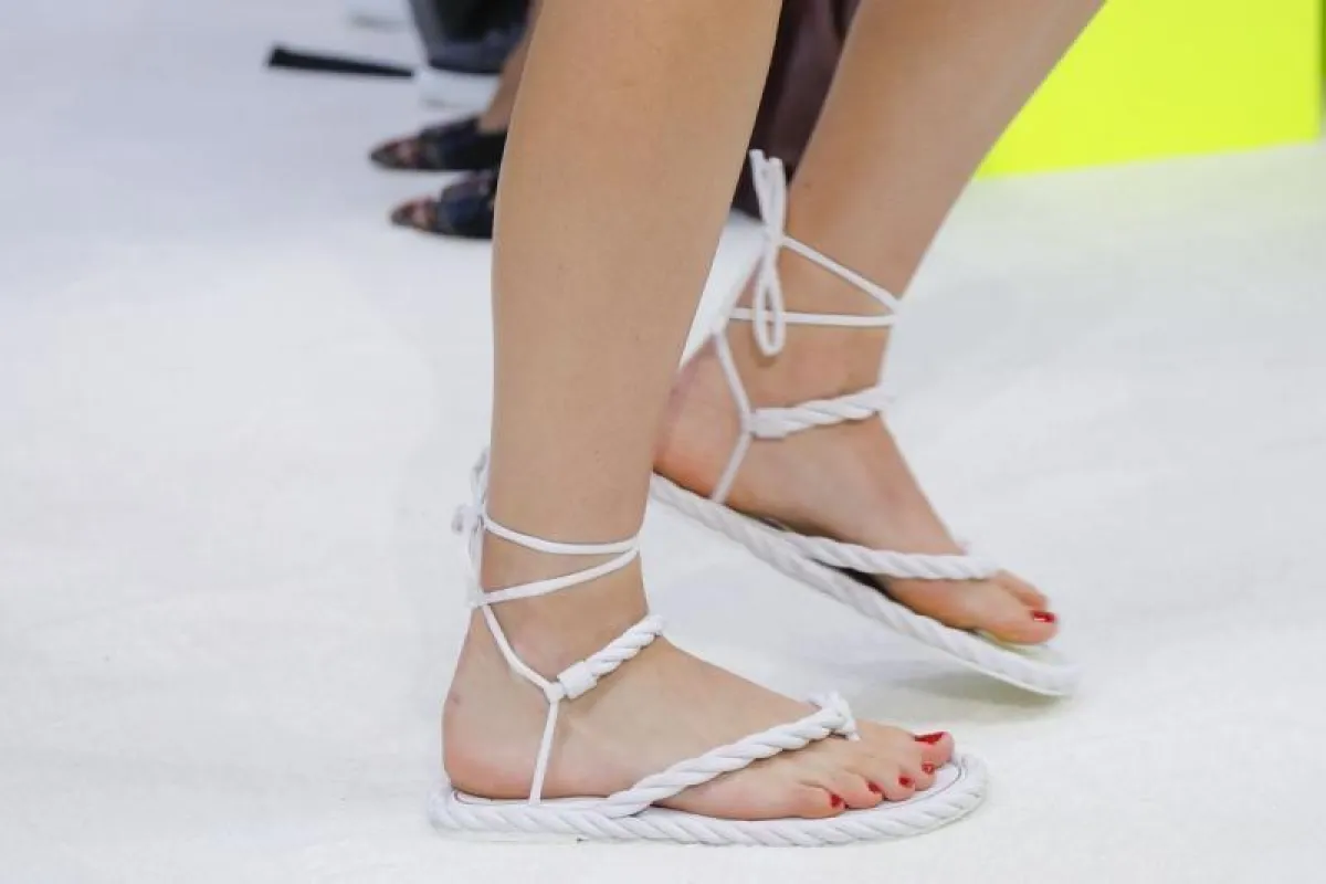 أيضاً قدمت ماركة ايزابيل مارنت الصندل العصري باللون الأبيض وبأربطة تكشف القدم مع سوار الكاحل برباط جانبي.