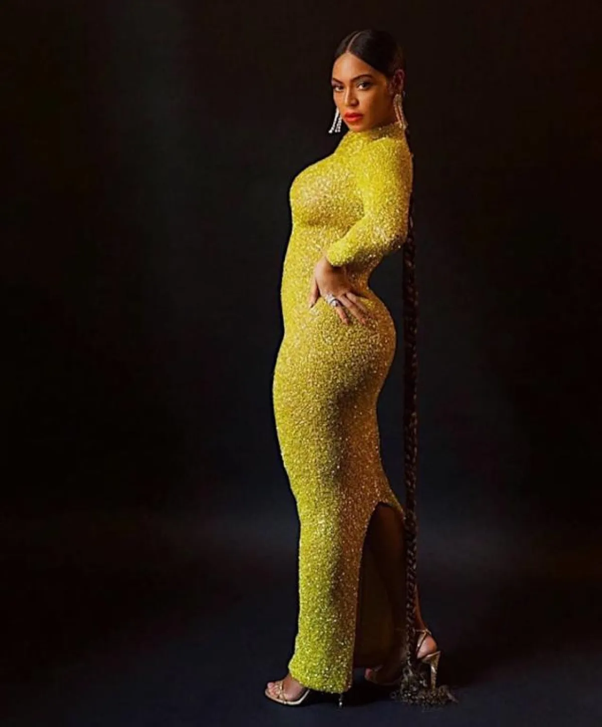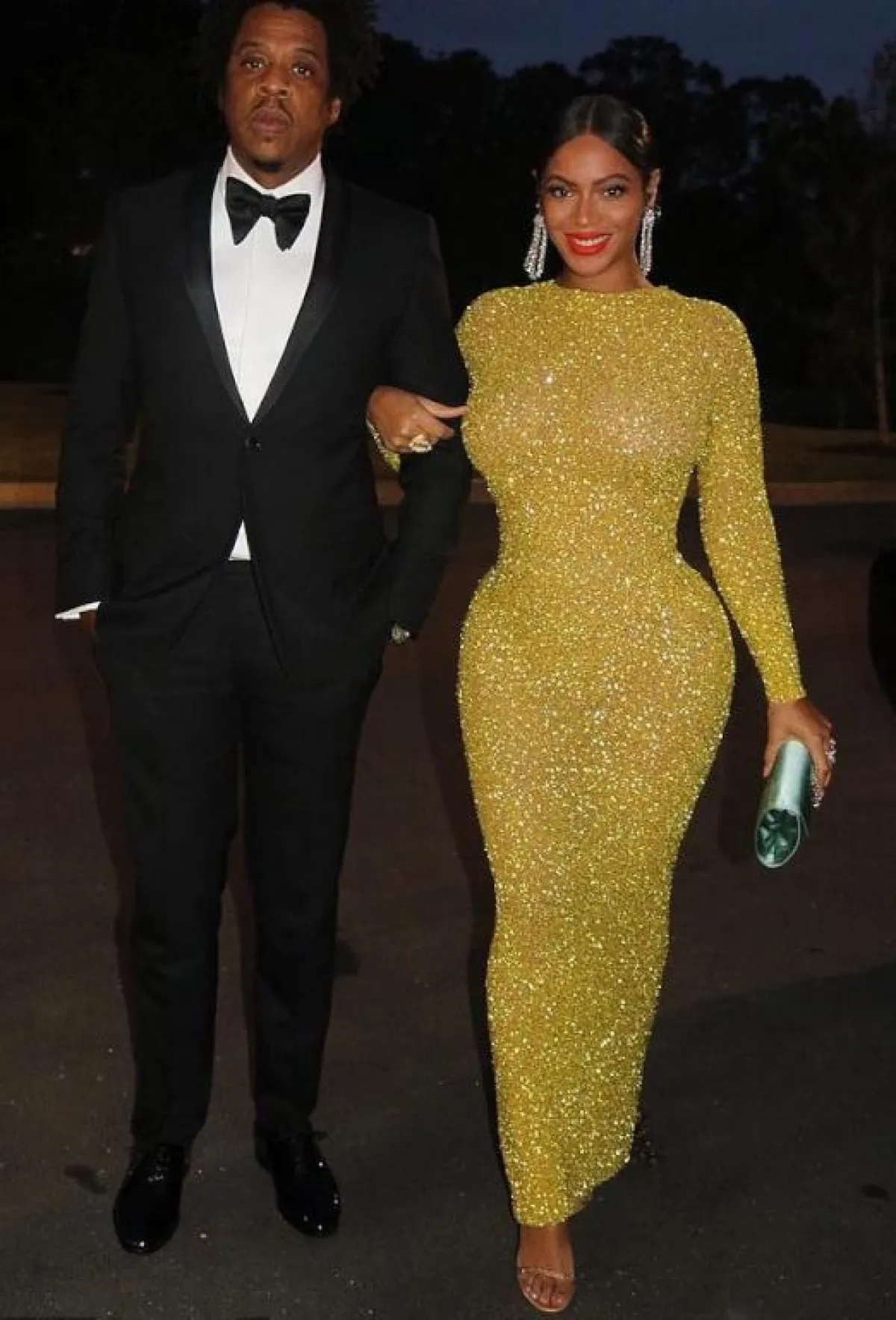 حضرت بيونسيه Beyonce مؤخراً أحد المناسبات المسائية برفقة زوجها وقد اختارت مثل العادة اطلالة لافتة ونسقتها بطريقة مميزة، وهذه المرة وقع اختيارها على فستان باللون الأصفر مطرز بحبات الكريستال البراقة من يوسف الجسمي Yousef Aljasmi قصته ضيقة مع ياقة عالية وأكمام طويلة، وقد اعتمدت معه تسريحة شعر غريبة على شكل جدلة طويلة وصلت تقريباً حد الأرض ومجوهرات ماسية بارزة وملتفة.