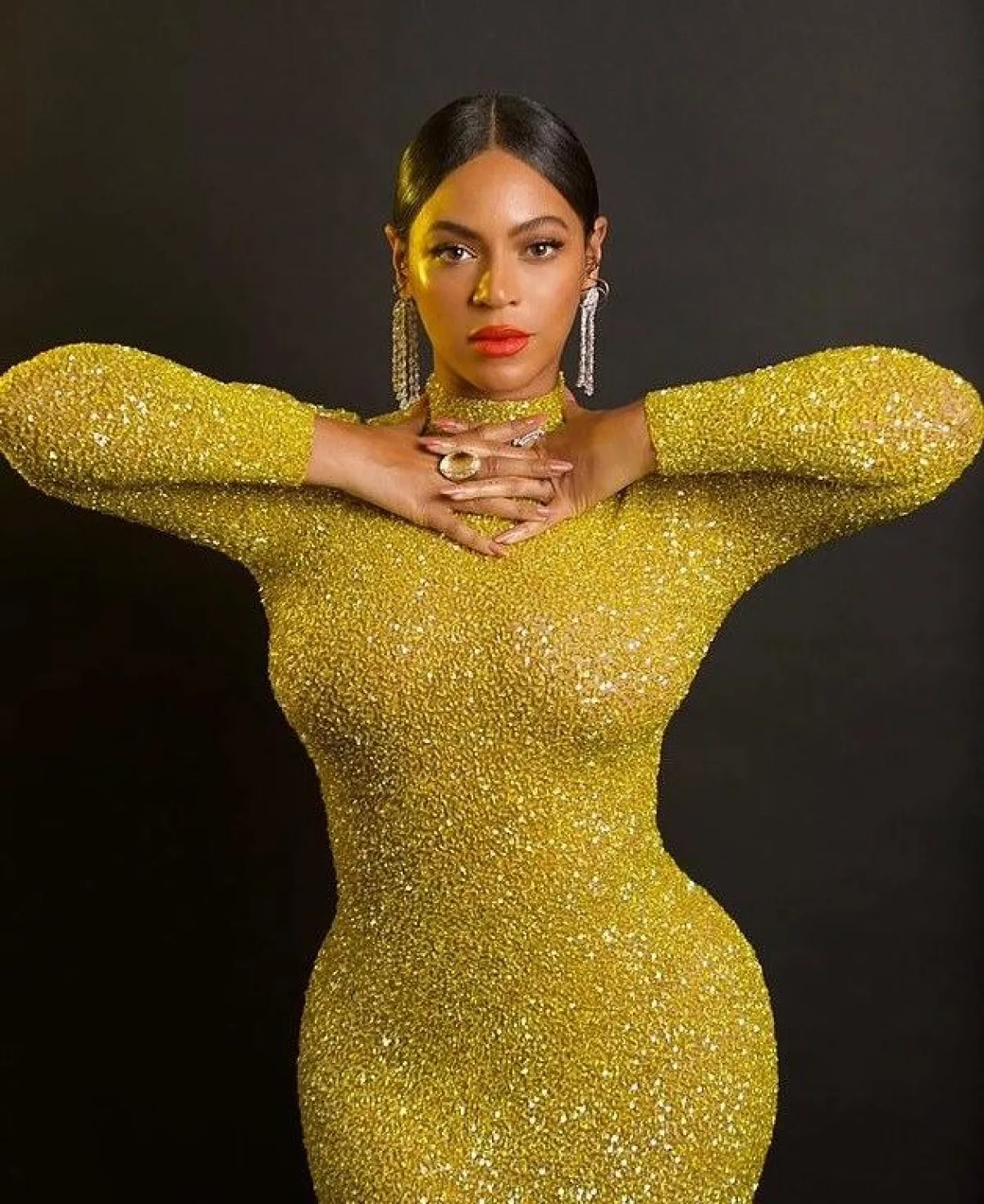 بيونسيه في فستان براق أصفر من يوسف الجسمي