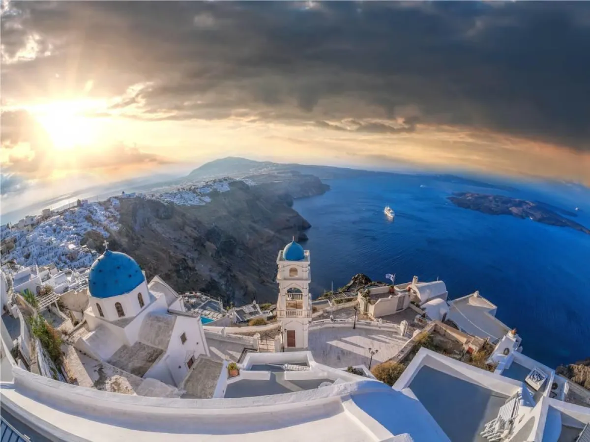 تُعتبر هي أحدث الوجهات السياحية الشهيرة لهذا العام، والمفضلة لدى العرسان الجدد، تتمتع جزيرة سانتوريني المطلة على البحر بأجواء خلابة، ومناظر طبيعية ليس لها مثيل، كما أنّ الفنادق بسيطة ومترفة في الوقت نفسه، سوف تجدين اللون الأبيض والأزرق من حولكِ، كما أنها مشهورة بـ المطاعم الراقية، وأصناف مختلفة من الأكلات يمكنكِ أن تخبري مذاقها المميز.