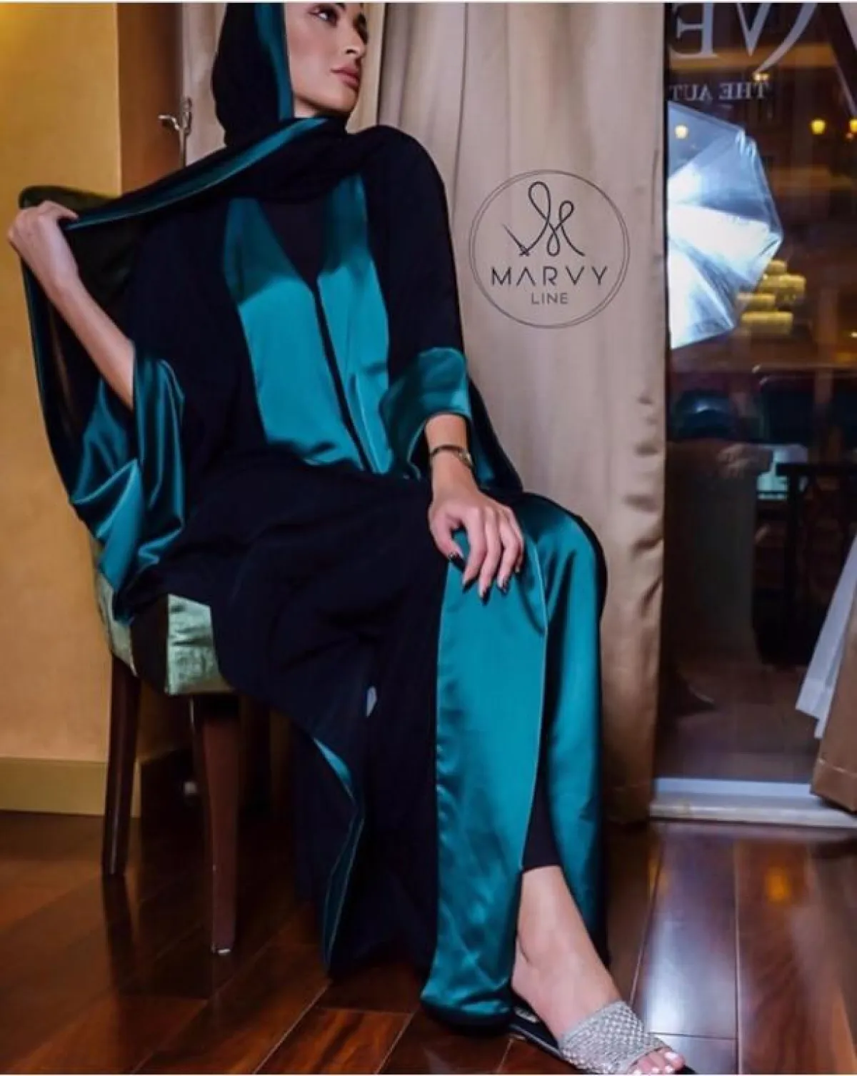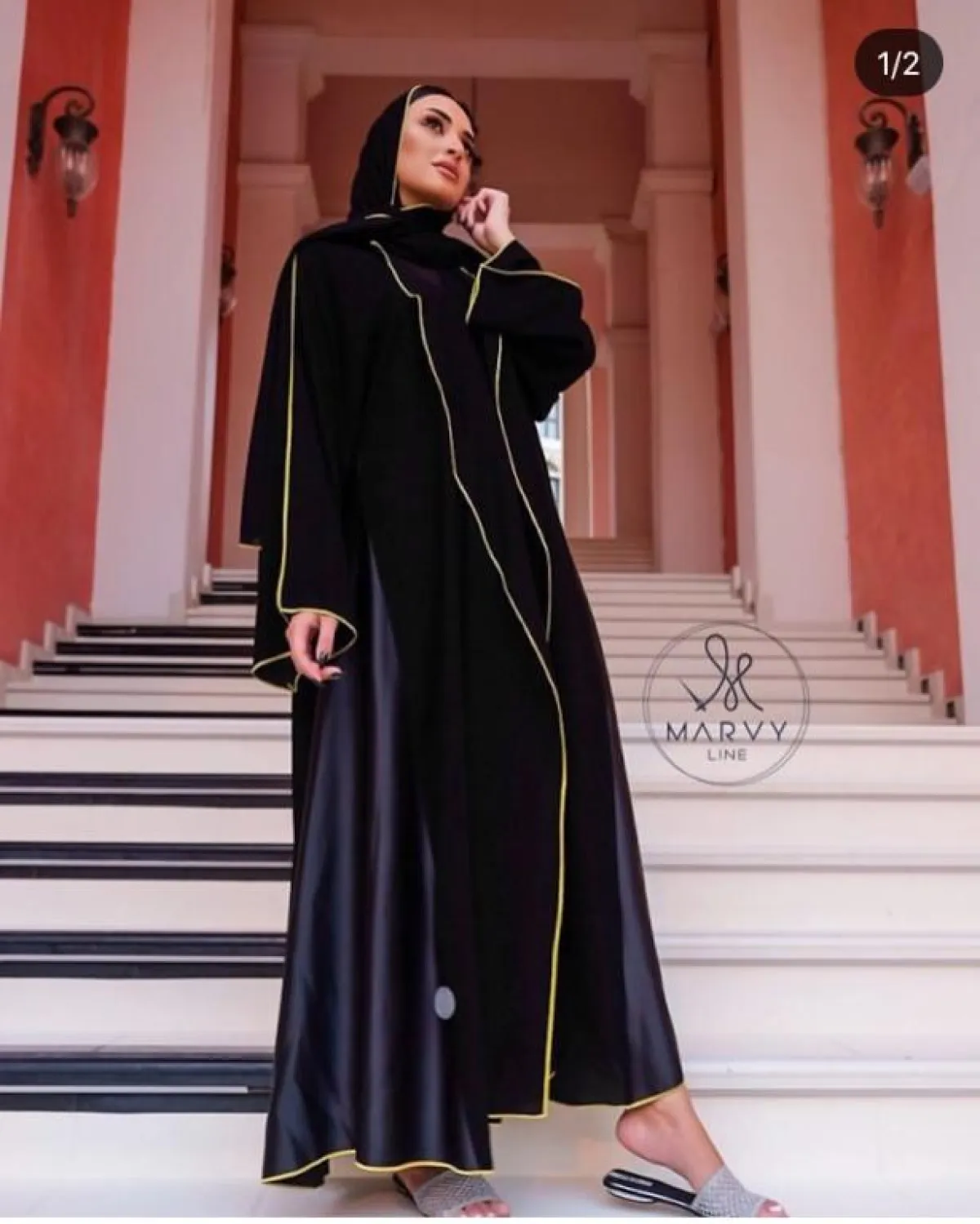 Marvy Line عبايه من الستان الحريري من