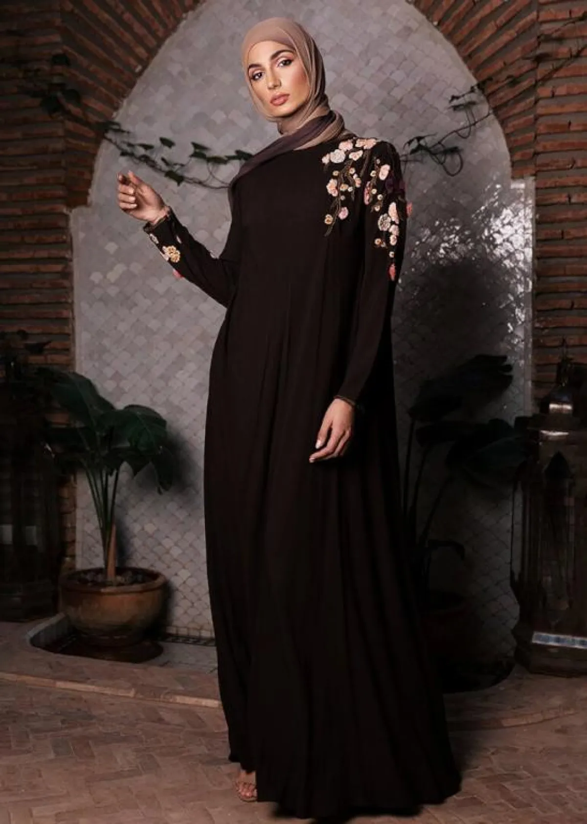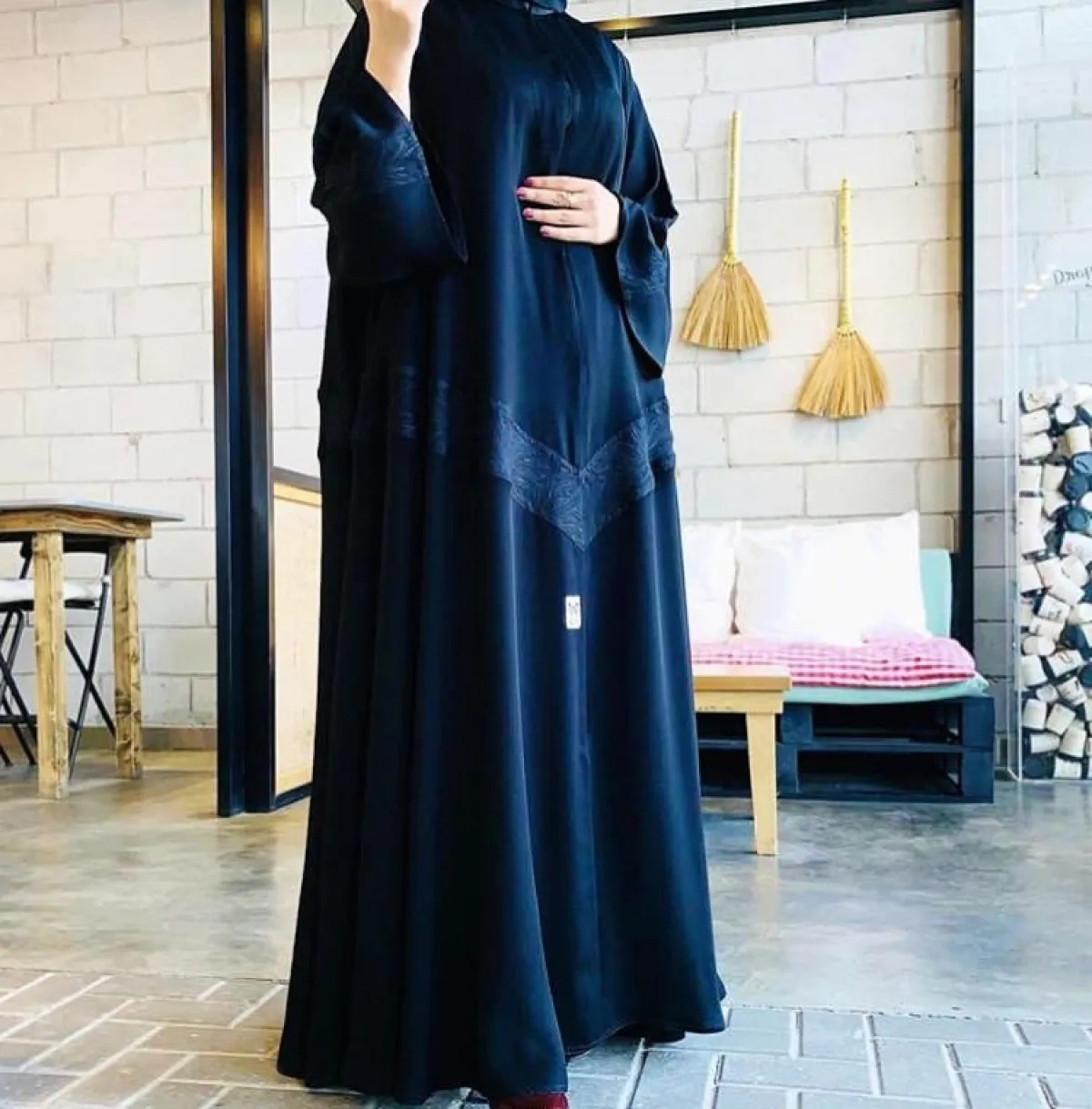 التطريزات على العبايات الساتان الحريري ربما يحتاج حرفية عالية، لأنّ التعامل مع هذه الخامة عادةً ما يكون حساسًا جدًّا، ولكنّ التطريزات المميزة سوف تضيف لمسات أنيقة للعبايه، كهذا الموديل من aabcollection، للتطريزات على الكتف من الأزرار والاكسسوارات البارزة، مناسبة لكِ لاطلالة نهارية للصبيّة الثلاثينية.