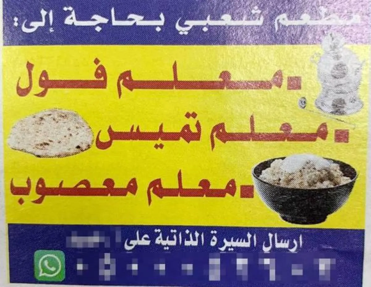 مطعم يعلن حاجته لـ«معلم فول» مع سيرة ذاتية لاستلام الوظيفة