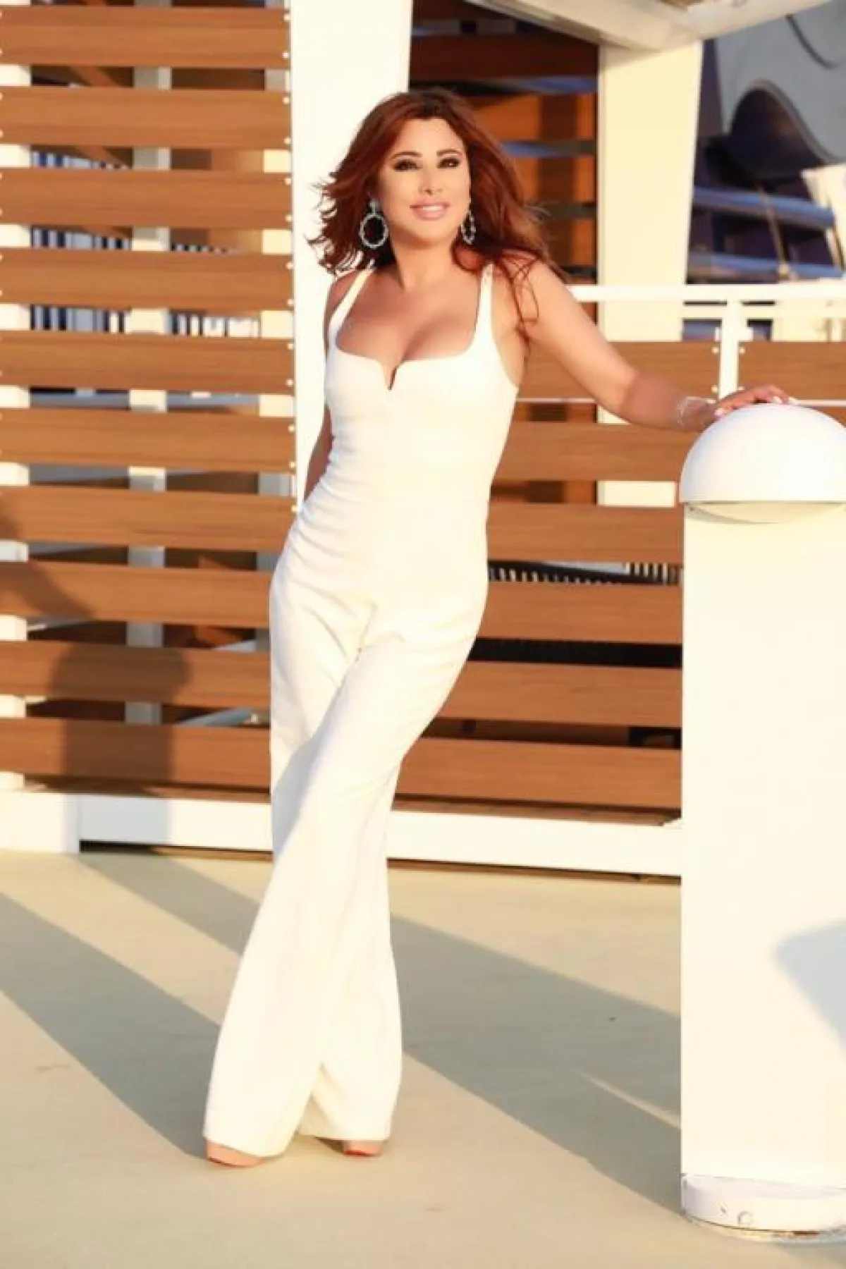 جمبسوت أبيض بتصميم عصري اختارته نجوى كرم