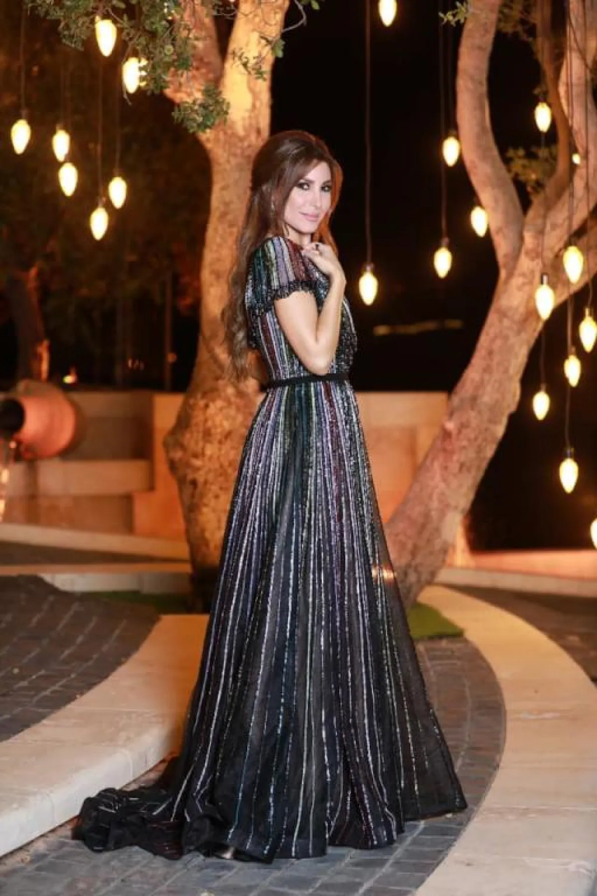 يارا في فستان سهرة ملون وبراق