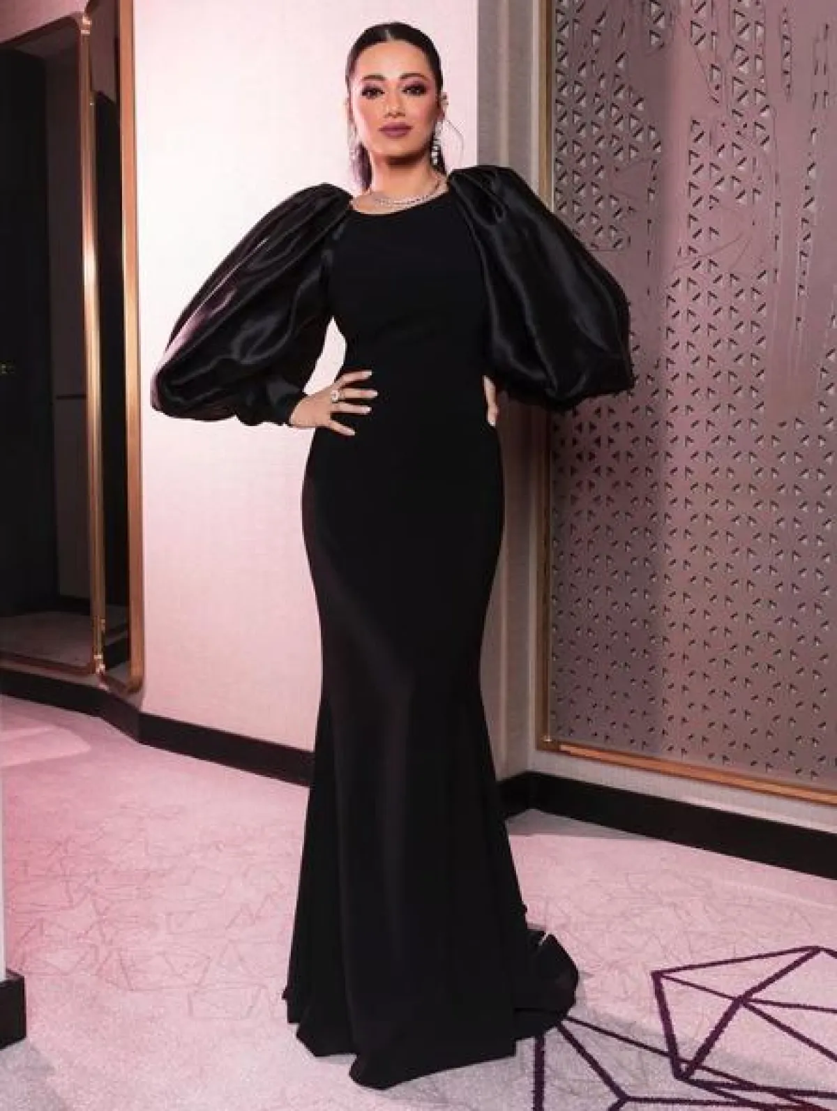 رحمة رياض في اطلالة لافتة في فستان أسود