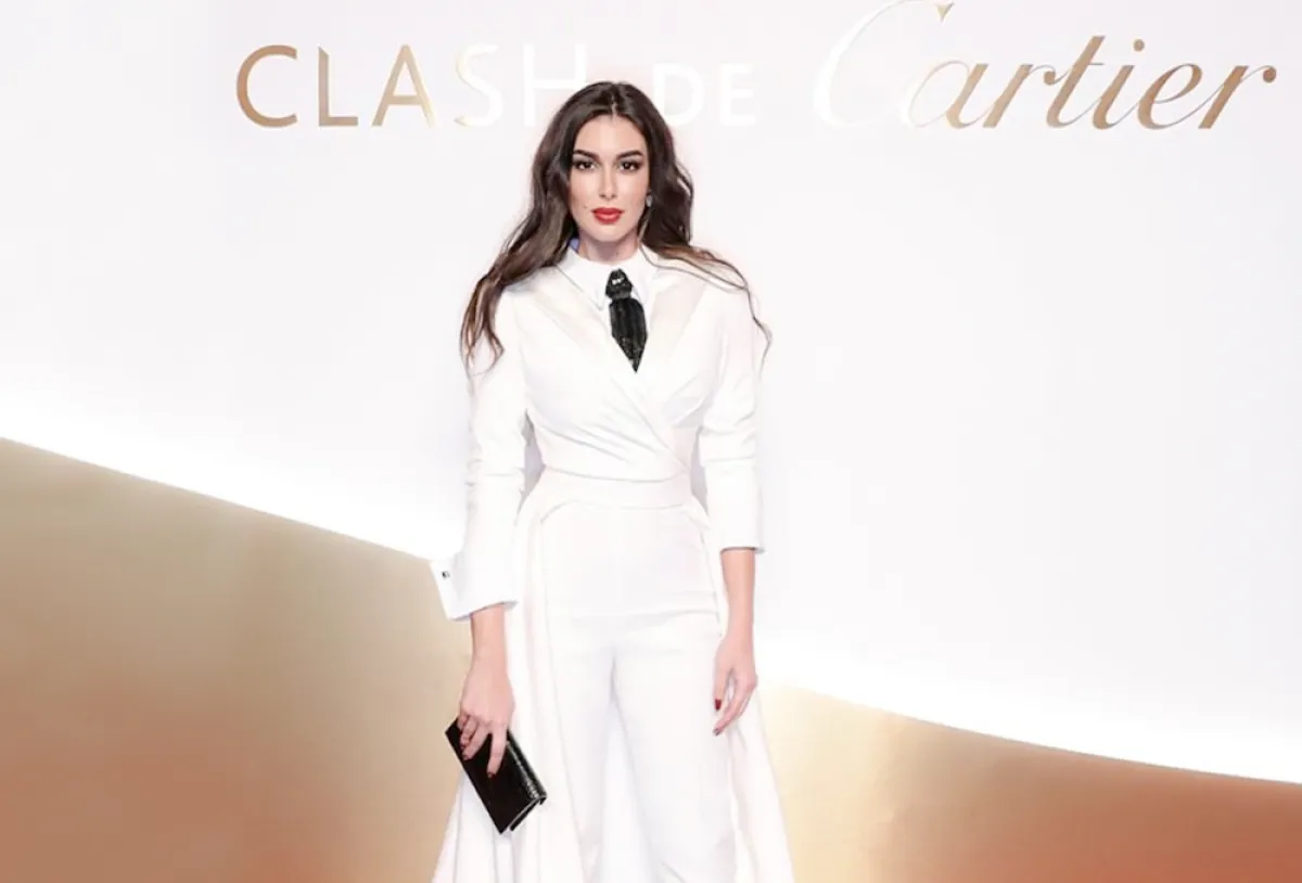 درة زروق في بدلة باللون الأبيض