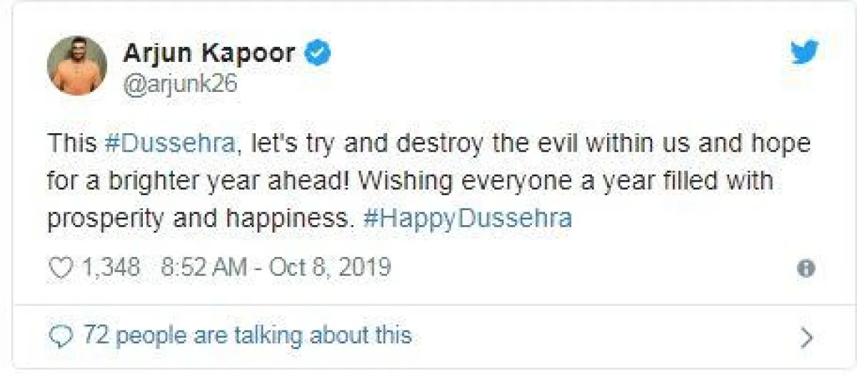 كما كتب أرجون كابور Arjun Kapoor: "في هذا اليوم دعونا نطرد الشر في داخلنا ونتأمل في سنة ومستقبل أكثر إشراقًا." كما تمنى أرجون للجميع سنة مليئة بالازدهار والسعادة.