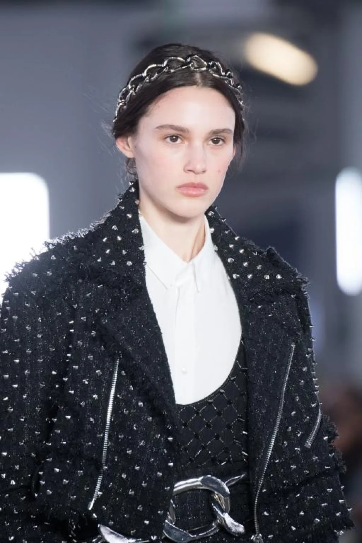 السلاسل: موضة الميتاليك تحقق عودة قوية في هذا الموسم. رأينا الميتاليك في موضة مناكير الاظافر. كذلك نراها حاليا على صعيد اكسسوارات الشعر. نموذج رائع من دار"بالمان" لسلاسل معدنية تم تنسيقها مع تسريحة بسيطة للشعر الاملس. اما النتيجة فآسرة!