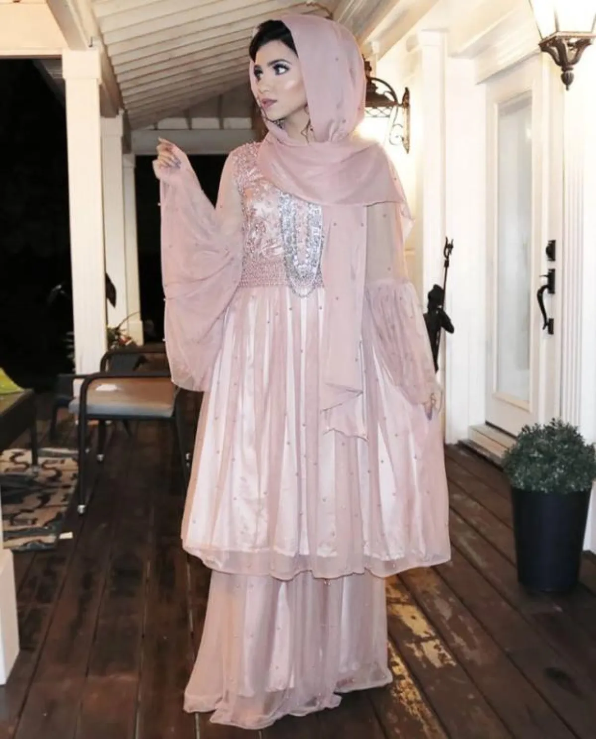 إذا كنتِ ترغبين في اعتماد لفة حجاب ترتدين معها أقراط الأذن، فيمكنكِ اعتماد هذه الطريقة للحجاب الواسع، مع البطانة من سايما خان، بطريقة عصرية وبسيطة، مع استخدام الدبابيس لتثبيت الحجاب.