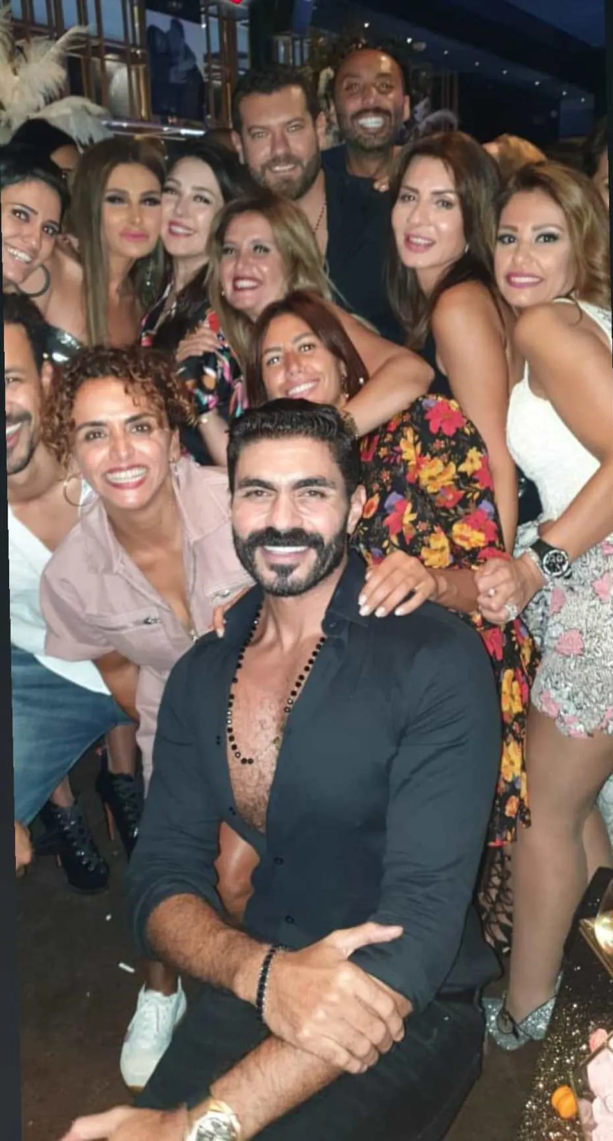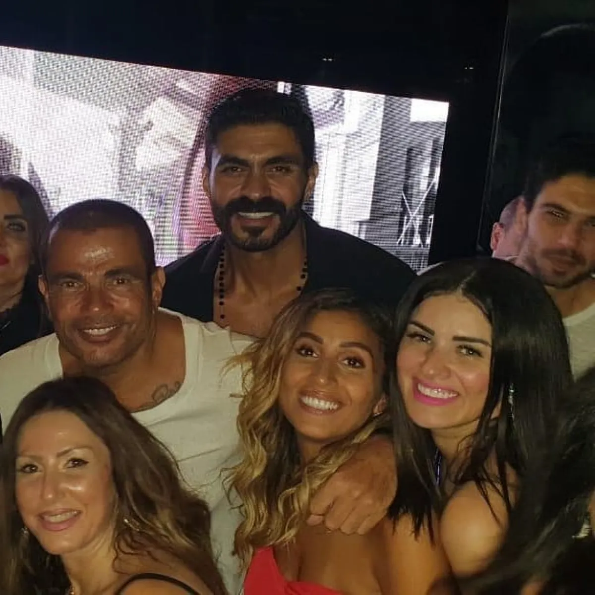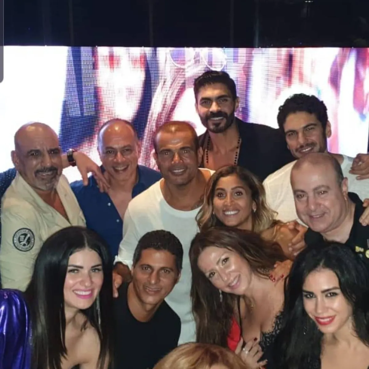 عمرو دياب والمنتج تامر مرسي وعدد من الأصدقاء