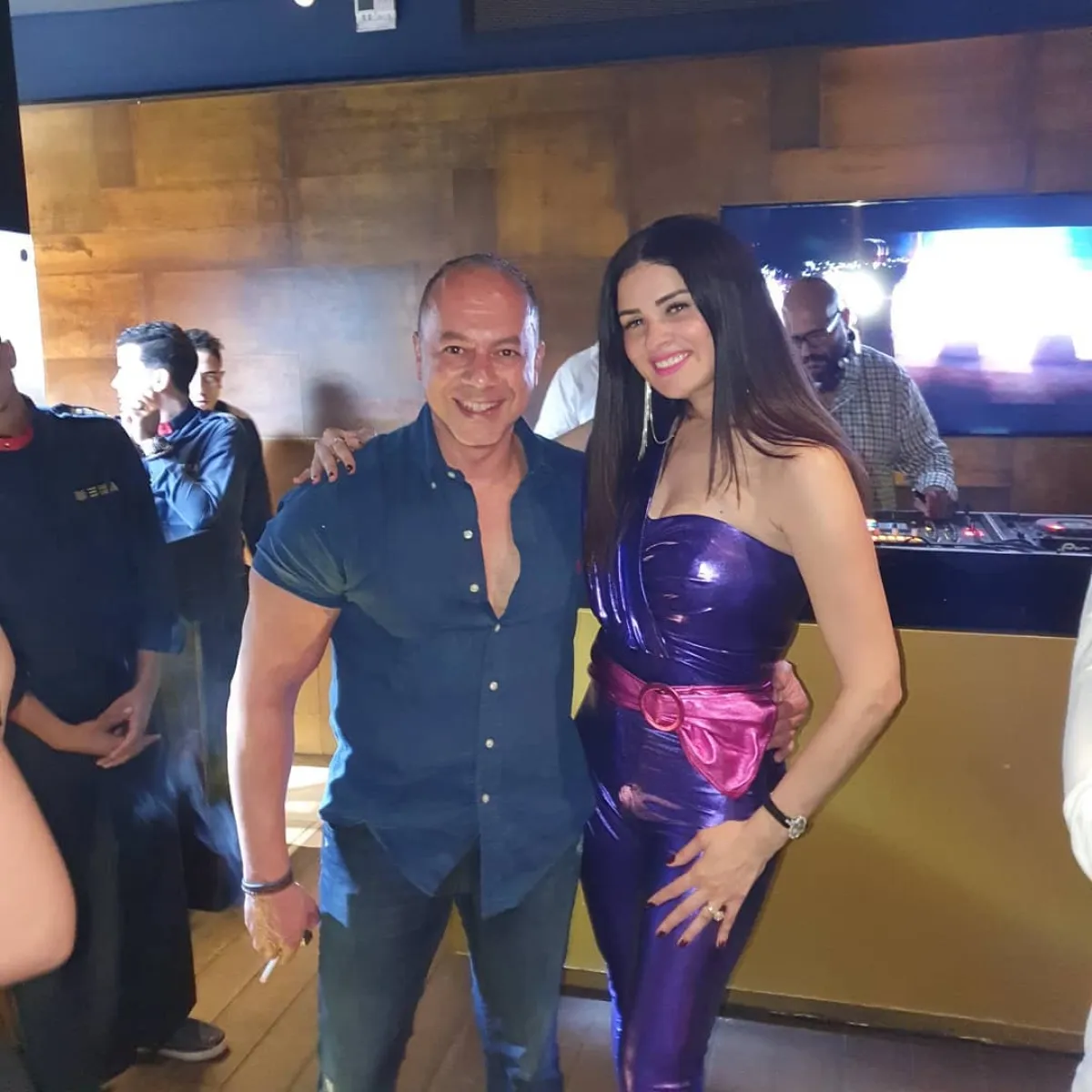 نسرين إمام برفقة زوجها تامر مرسي من حفل عيد ميلاد عمرو دياب