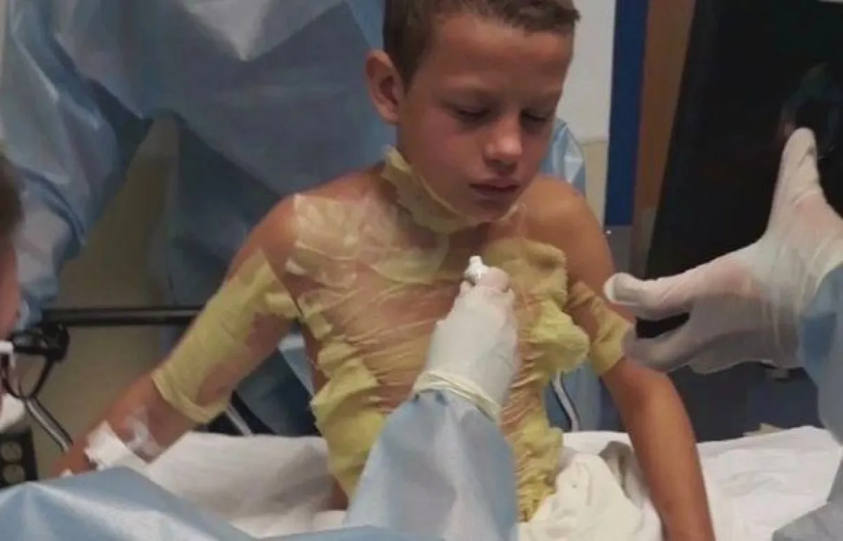 قال الأطباء إن الفتى عانى من حروق من الدرجة الثانية.