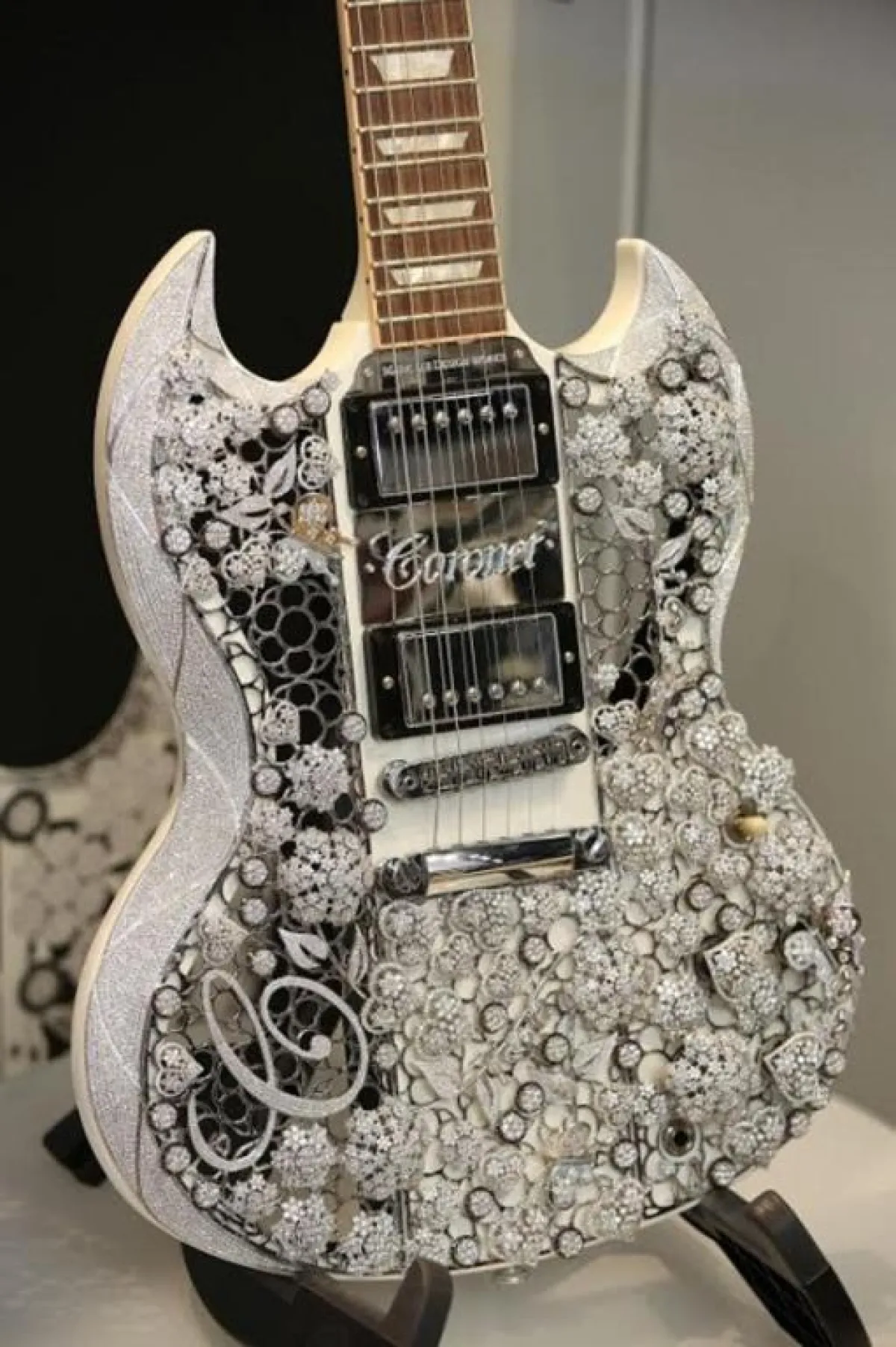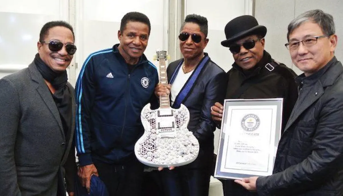 ففي عام 2015 دخلت هذه التحفة الفنية موسعة «جينيس» للأرقام القياسية كأثمن جيتار في العالم، إذ تحفل الآلة بما يزيد على 400 قيراط من الألماس و1.6 كيلوجرام من الذهب عيار 18 قيراطاً، وقد تم تصميمها من قبل كاتب الأغاني الشهير والمصمم الموهوب مارك لوي، وفق موقع «العين».