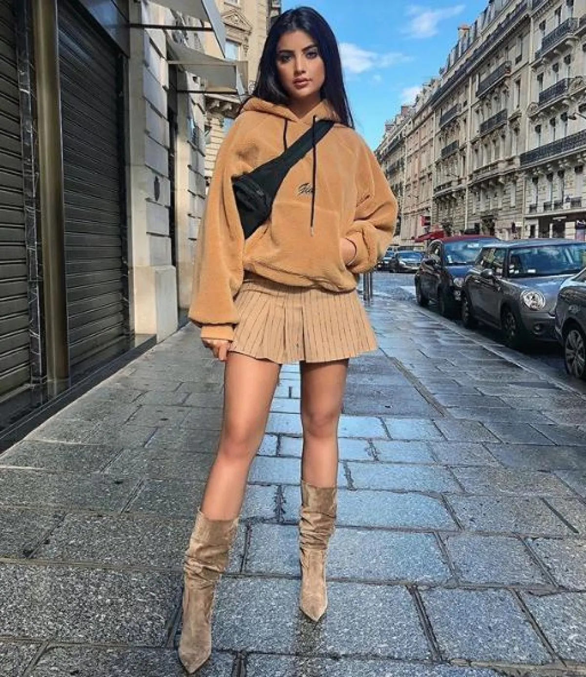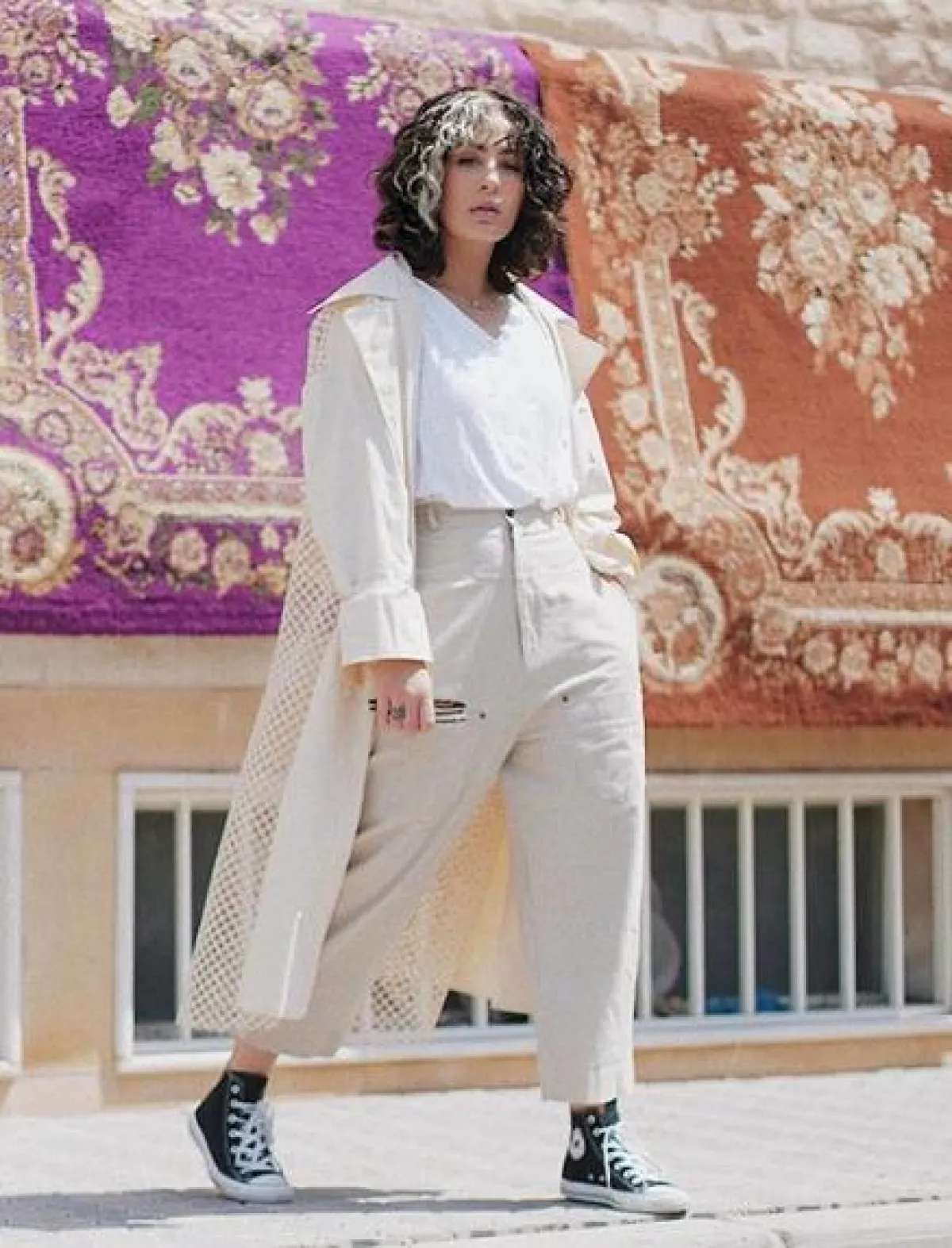 درجات اللون البيج والكاميل، أبرز صيحات الموضة هذا الخريف، وقد شاهدنا علا فرحات مؤخرًا في اطلالة لافتة وعصرية من هذا اللوك، وكانت عبارة عن تنورة قصيرة كلوش، نسقت معها سويتر فضفاضة وجزمة كاحل من المخمل، وحقيبة باللون الأسود بتصميم عصري.