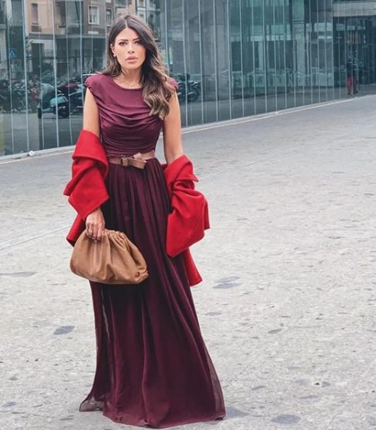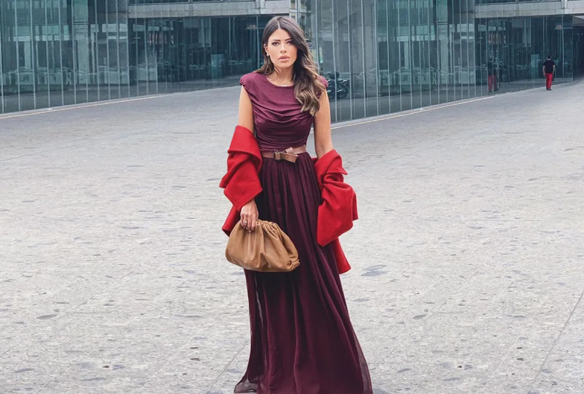 العنود بدر تعتمد دائمًا اطلالات أنيقة وعصرية، ومؤخرًا وخلال أسبوع ميلانو للموضة، شاهدناها في عدد من التنسيقات الخريفية اللافتة، مثل هذه الاطلالة التي اختارت فيها درجات لونية غنية، وكانت عبارة عن فستان ماكسي باللون البنفسجي من ماكس مارا MaxMara، زينت خصره بحزام باللون البيج مع معطف باللون الأحمر، وشنطة يد من بوتيغا فينيتا Bottega Veneta.