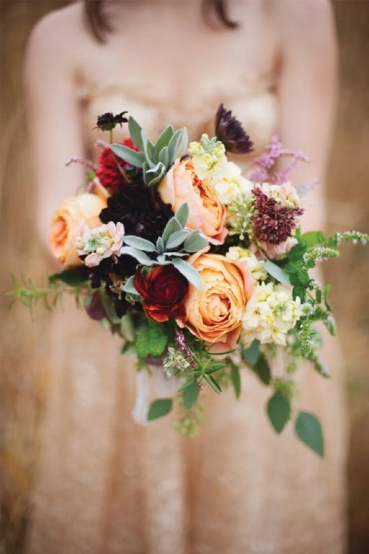 *كوني أجمل عروس ليلة زفافكِ ومميّزة، بدءًا بفستانكِ، وصولًا إلى الاكسسوارات، وحتى باقة زفافِك، واستوحي مسكة يدكِ من ألوان الخريف كالبرتقالي والأصفر والبرونزي.