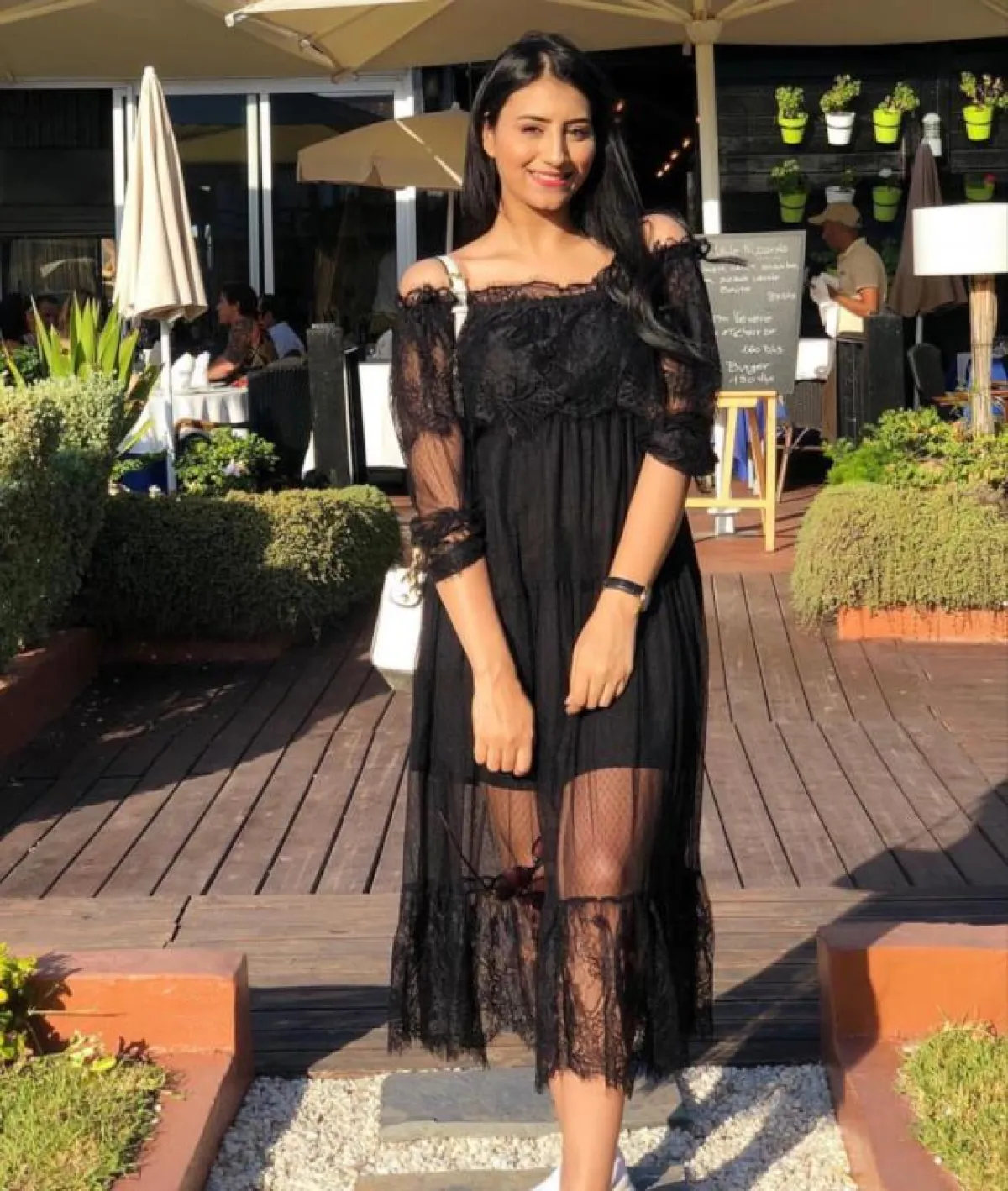 ارتدت مريم فستانًا شبابيًّا أبيض مزيَّنًا بقماش مخطَّط بالأبيض والأحمر، وظهرت بفستان أصفر مزين بزهور بيضاء وبأكمام طويلة مميزة، وتألَّقت بفستان أسود مكشوف الكتفين ومزين بقماش الدانتيل الشفاف، وتجملت بآخر أحمر مزين بخطوط رياضية في الجهتين وأكملته بحقيبة خضراء وحذاء رياضي، ونسقت فستانًا أسود مزينًا بخطوط بيضاء وزهور حمراء مع حذاء أبيض رياضي ونظارات شمسية ضخمة، واختارت فستانًا أبيض مزينًا بخطوط حمراء أفقية من الأسفل وطُولية من الأعلى، وتزينت بفستان أبيض مزين من الأعلى بقماش أسود وزهور بيضاء صغيرة، وأطلَّت بفستان زهري بتصميم ناعم مناسب للشاطئ، وآخر سماوي قصير مزيَّن بزهور بيضاء، كما تميزت بفستان واسع أسود مزيَّن بقماش أخضر بنقشات سوداء، وأكملته بحذاء رياضي وحقيبة بُنية مصنوعة من الجلد.
