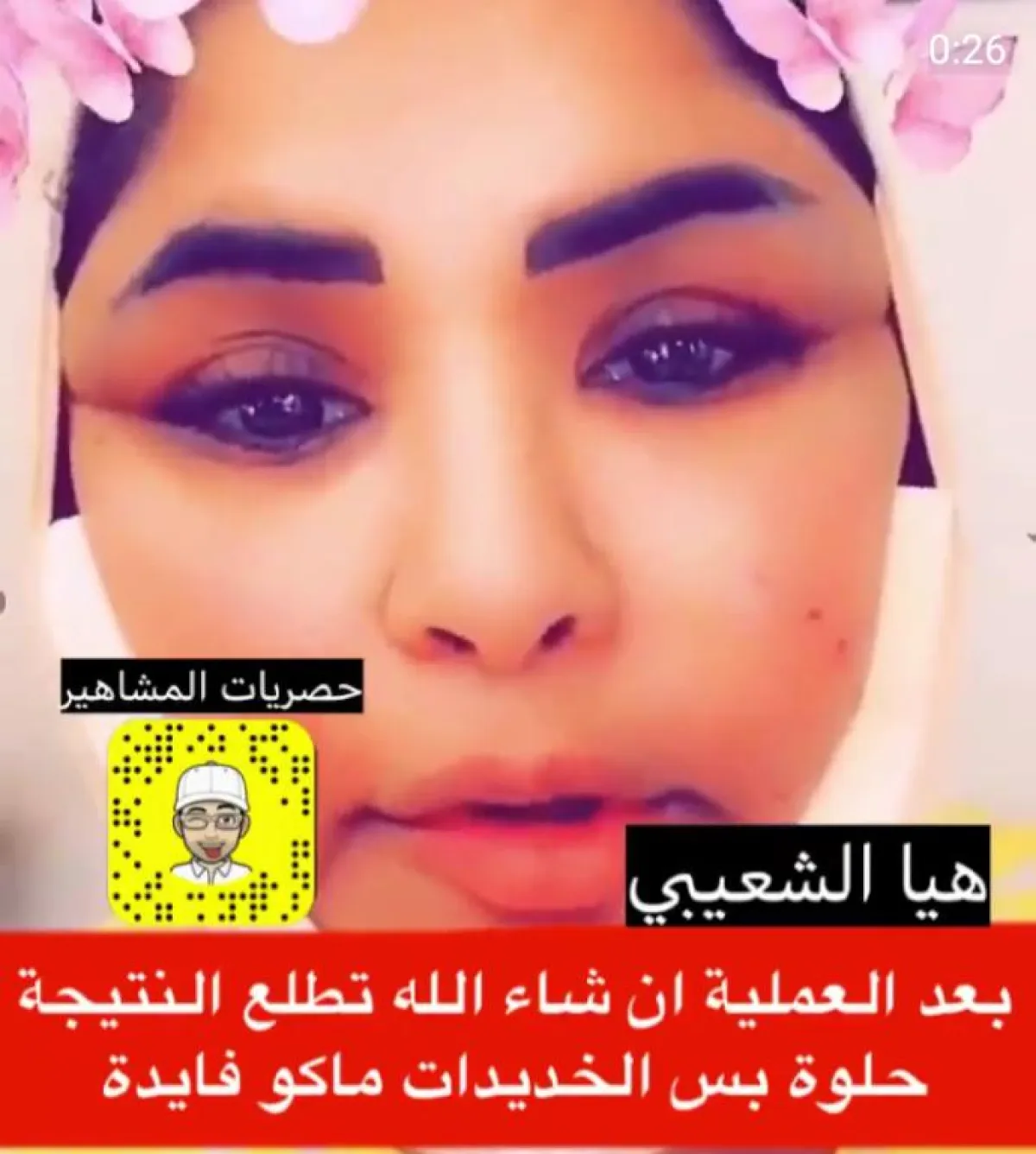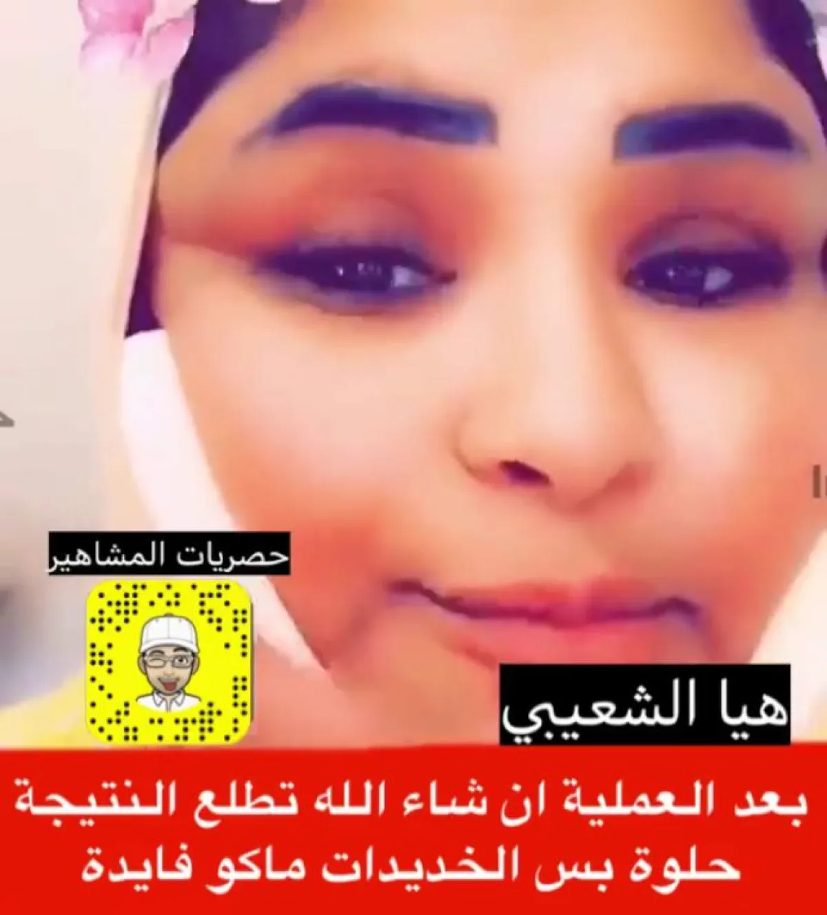 وكانت هيا الشعيبي قد نشرت فيديو قبل يومين قبيل دخولها إلى غرفة العمليات، وطلبت من المتابعين الدعاء لها، حيث خضعت لعملية تجميلية لإزالة اللغلوغ، كما ظهر في الصور التي نشرتها، أما في الفيديو الجديد، فظهر أنّ التجميل طال أيضًا المنطقة المحيطة بالعينين.