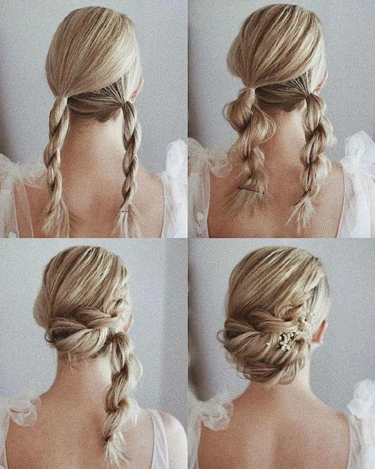 هذه التسريحة ناعمة ورائجة بشكل كبير، تناسب العروس صاحبة الذوق الناعم والرقيق، وتناسب كثيرًا تسريحات الشعر المصبوغ، لأنها تُبرز جمال لونه.