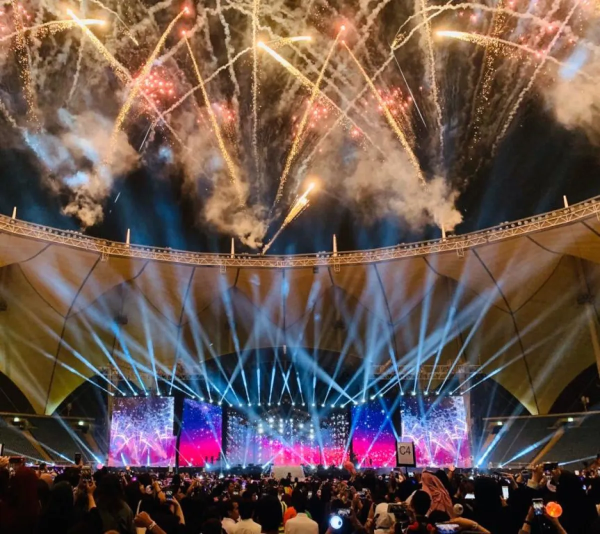 انطلق موسم الرياض، مساء أمس الجمعة، بحفل جماهيري عالمي ضخم، شهده استاد الملك فهد الدولي بالرياض، وحظي بإقبال غير مسبوق، قبل 7 ساعات من انطلاق الحفلة التي تُحييها فرقة «بي تي إس» لموسيقى البوب الكورية، واكتسى درة الملاعب بأكثر من 50 ألف متفرج حضروا للاستمتاع بالحفل العالمي، حيث تزينت خشبة المسرح بتصميم عالمي احترافي يُمثل إحدى محطات الجولة العالمية للفرقة، تحت عنوان «لوف يورسيلف.. سبيك يورسيلف»، والتي حطمت الأرقام القياسية العالمية؛ كونها الجولة الأعلى تسجيلاً للإيرادات في شهر مايو الماضي، إذ جمعت أكثر من 50 مليون دولار أمريكي خلال شهر واحد، مما عزَّزَ مكانة «بي تي إس» كواحدة من ألمع الفرق ضمن مشهد موسيقى البوب العالمي.