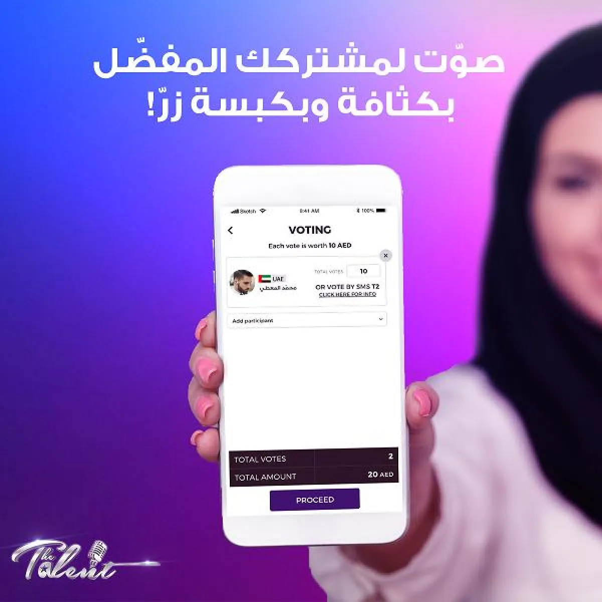 يشار إلى أن نجم The Talent سوف يحمل هذا اللقب من خلال دعمه بالتصويت له، من خلال بوابة الدفع الإلكتروني على موقع أو تطبيق The Talent علماً أنه يمكن التصويت 1000 مرّة للمشترك المفضّل، وأيضا عبر الرسائل القصيرة (SMS)، على أن يتم في 22 أكتوبر\تشرين الأول الحالي الإعلان عن أسماء الفائزين الثلاث.