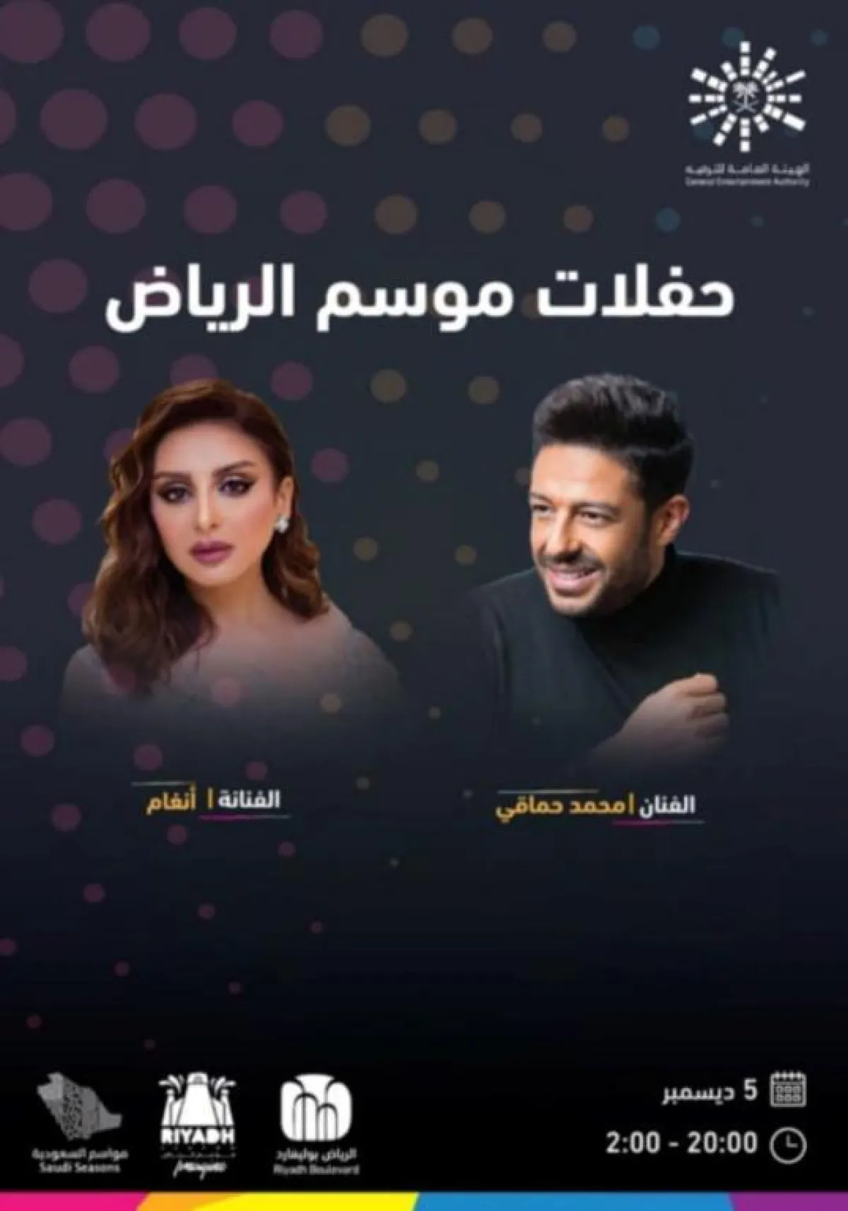 حيث سيكون عشاق الفن في العاصمة السعودية وزوارها على موعد مع ليالٍ فنية مميزة، يحييها أبرز نجوم الفن في السعودية والخليج والوطن العربي والعالم، وسيستمتعون بأجواء طربية حالمة وحماسية.