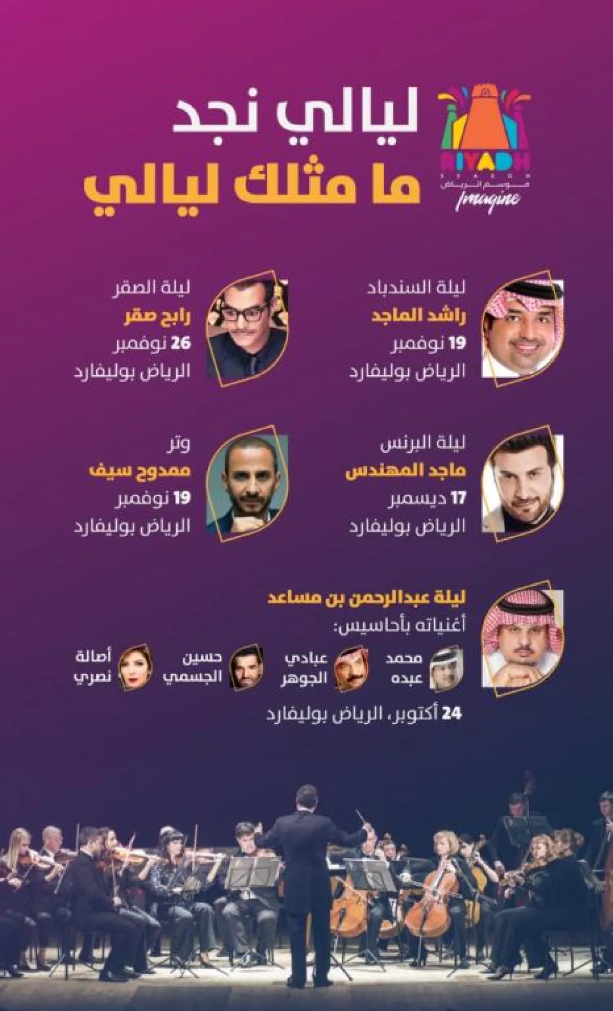 في ليلة خاصة به، يعيش الحضور تجربة فنية فريدة، إذ يلتقي الفنان راشد الماجد جمهوره السعودي، ليغني له أجمل أعماله القديمة والجديدة، في 19 نوفمبر.