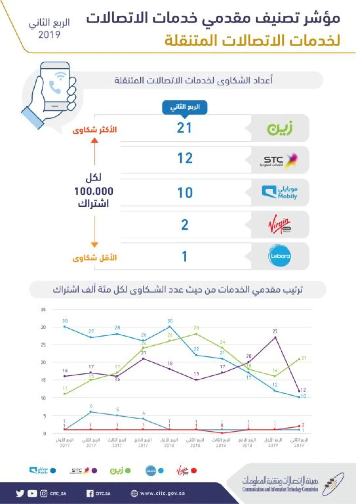 أصدرت هيئة الاتصالات وتقنية المعلومات مؤخرا، مؤشر تصنيف مقدمي خدمات الاتصالات من حيث الشكاوى المصعدة للهيئة في الربع الثاني من عام 2019م، وفقاً لمستويات اهتمام مقدم الخدمة بالعميل، وذلك بهدف تعزيز المنافسة بين المشغلين لرفع كفاءة الخدمات المقدمة، وتعزيز جودتها ودفعهم نحو تطوير هذه الخدمات بما يتماشى مع تطلعات المستخدمين، وذلك عبر نشر نتائج المؤشرات والبيانات وفق آليات شفافة وواضحة.