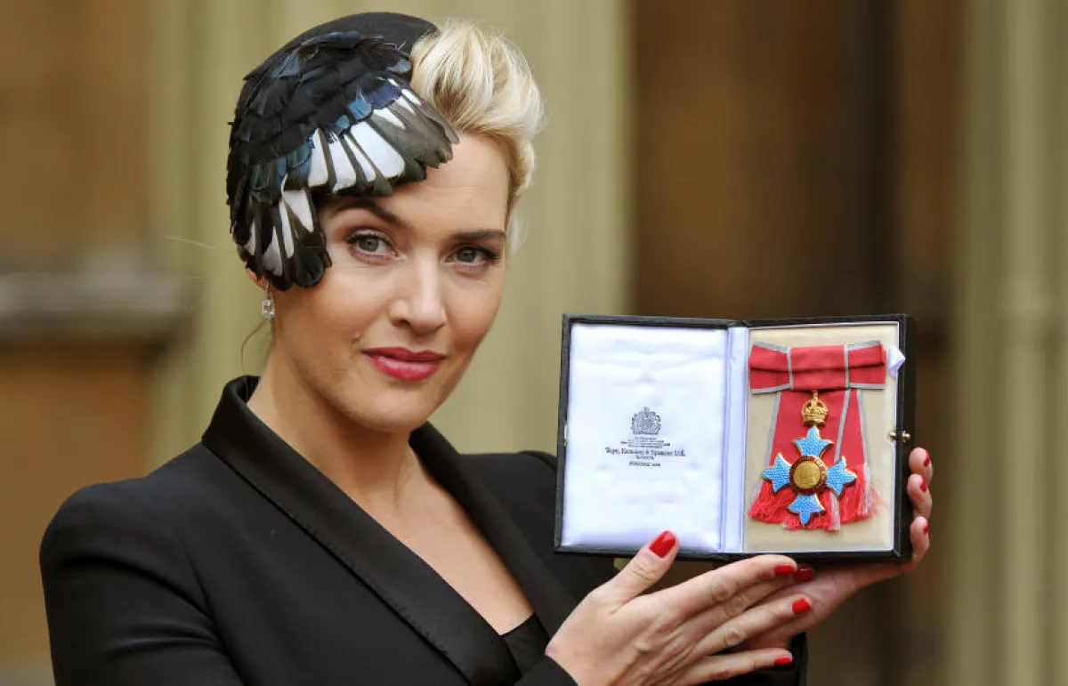 لحظة تسلم كيت وينسليت للوسام من الملكة إليزابيث: