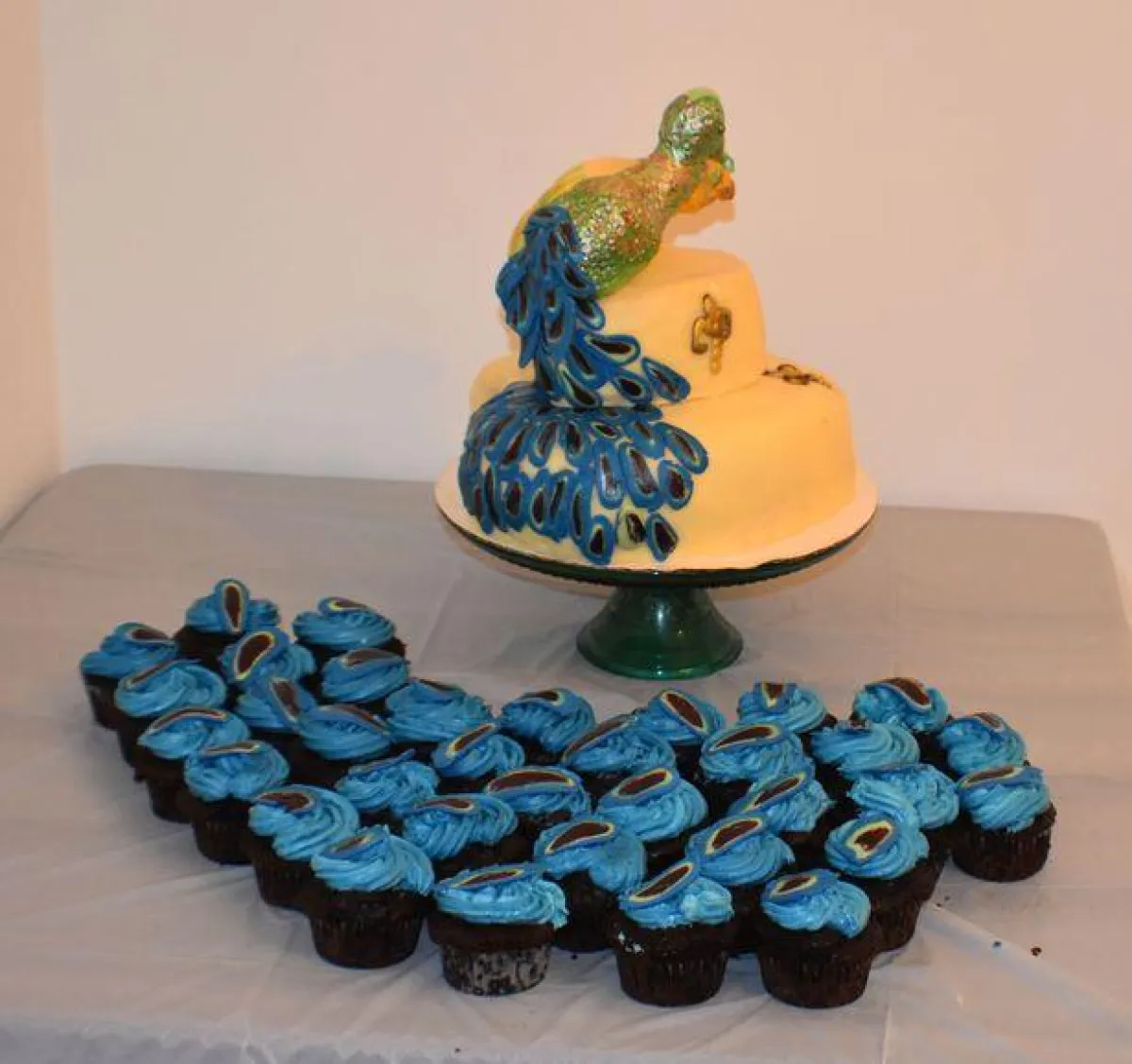وطلبت العروس رينا ديفيس، وهي من ولاية جورجيا بالولايات المتحدة، من إحدى خبازات الحلوى، صناعة كعكة زفافها على شكل الطاووس، وعرضت عليها صورة مماثلة لكعكة أحلامها، عثرت عليها على الإنترنت.