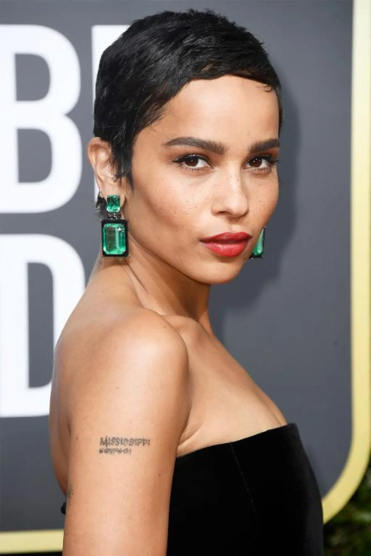 8. زويه كرافيتز: تسريحة بيكسي قصيرة خالية من التفاصيل، وبالشعر الاملس. لمسة تفيض بالكياسة وتذكّر بأسلوب الممثلة أودري هيبورن.
