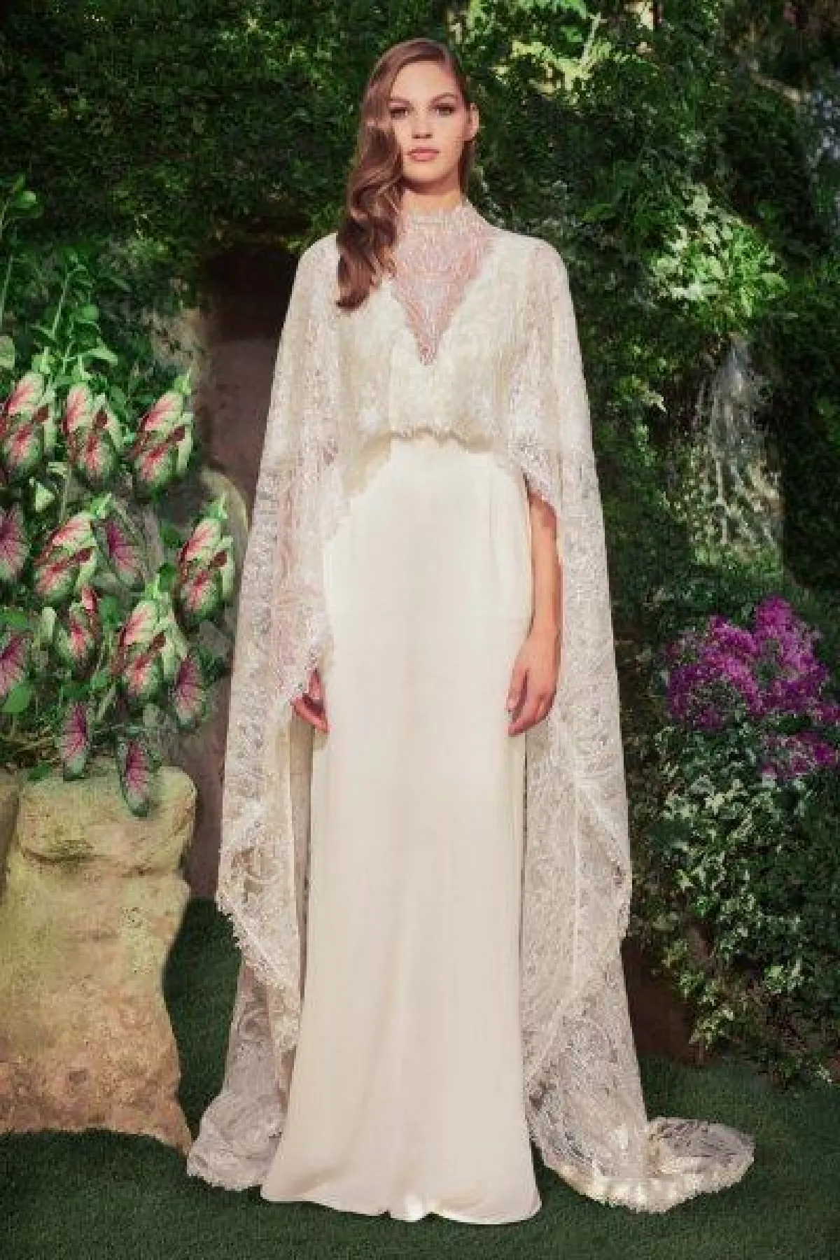 وفي موسم خريف وشتاء 2020، قدمت العديد من الماركات فساتين زفاف بصيحة الكاب، والتي يمكن أن تلهمك بإطلالة جذابة واستثنائية في يومك الكبير.