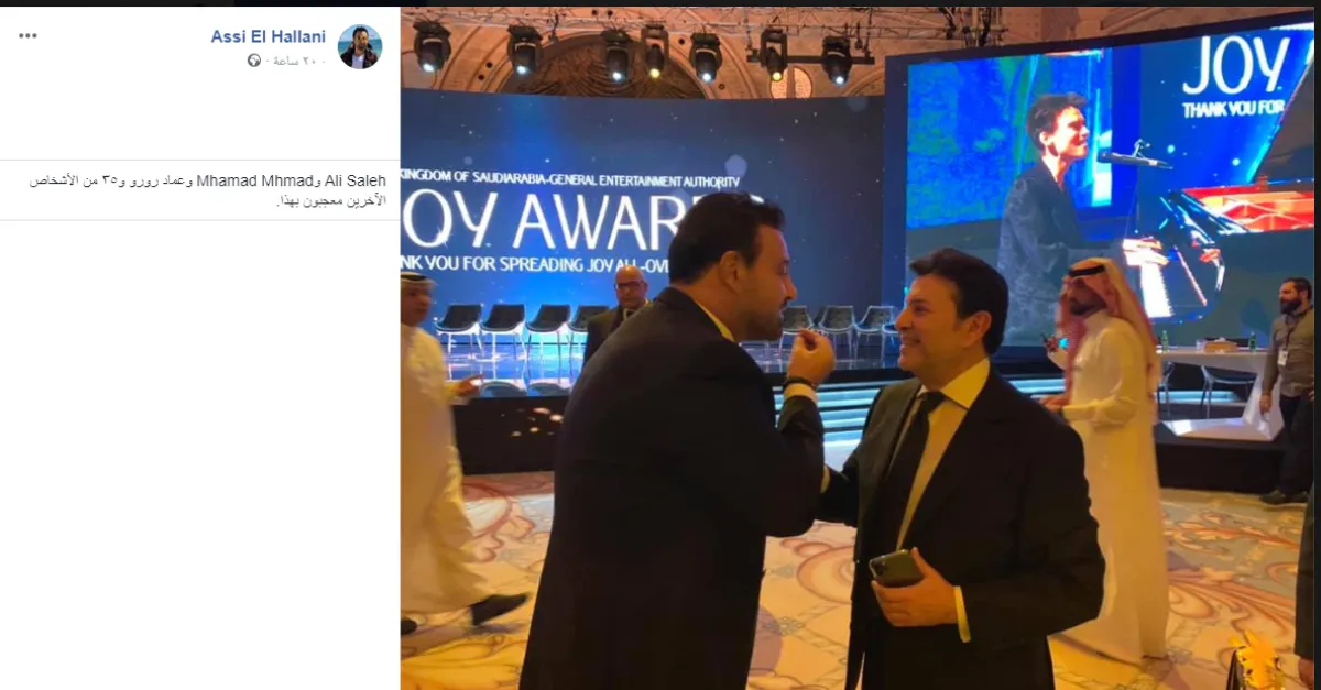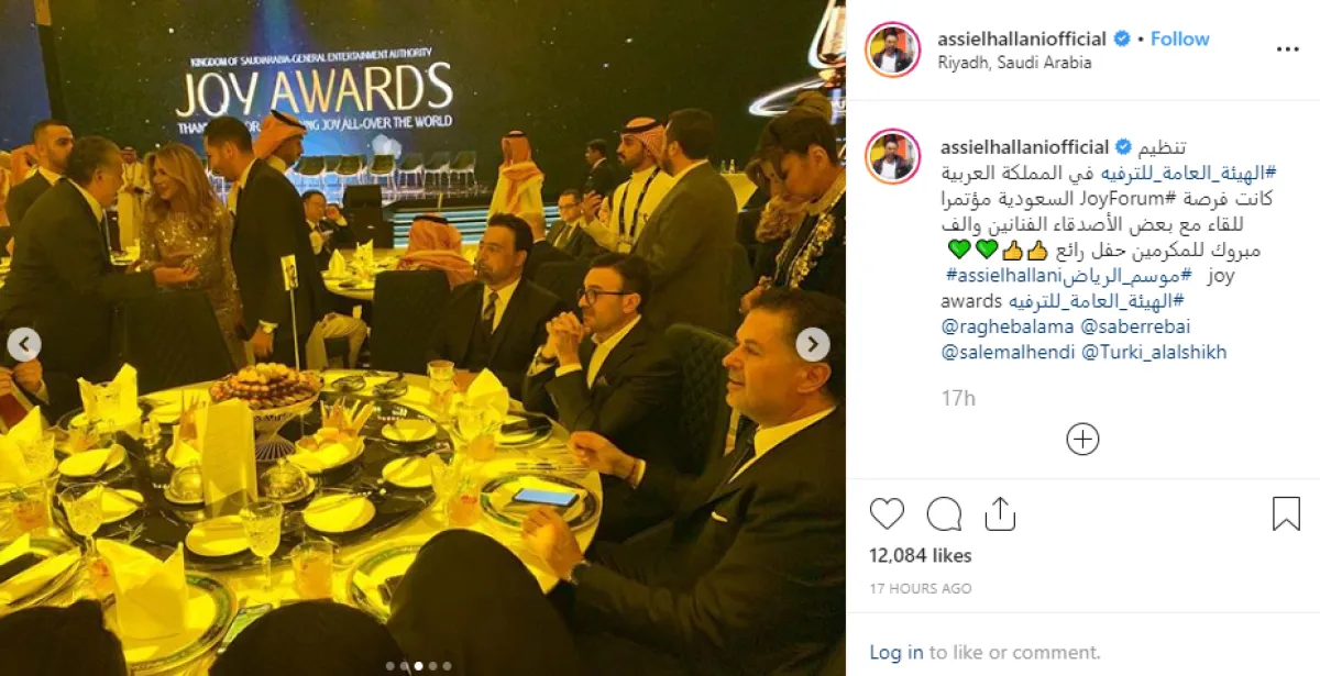 بينما علَّق الفنان عاصي الحلاني على حساباته الرسمية بمواقع السوشيال ميديا بقوله: "تنظم الهيئة العامة للترفيه في المملكة العربية السعودية مؤتمر JoyForum، وكانت فرصة للقاء بعض الأصدقاء الفنانين.. وألف مبروك للمكرمين، حفل رائع". ونشر الكثير من الصور مع زملائه الفنانين.