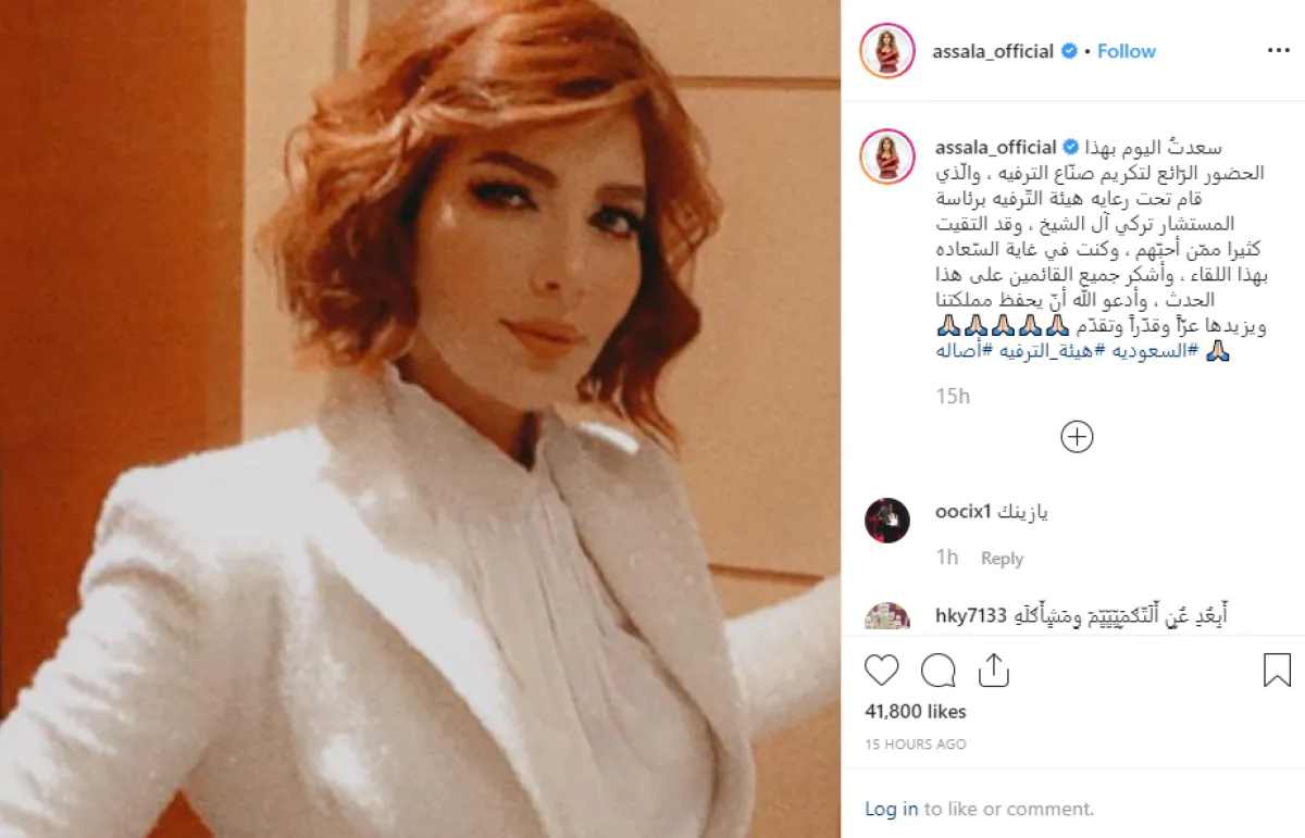ونشرت الفنانة أصالة صورة لها على الإنستجرام، معبِّرة عن الحفل بهذه الكلمات: "سعدتُ اليوم بهذا الحضور الرّائع لتكريم صنّاع الترفيه، والّذي قام تحت رعاية هيئة التّرفيه برئاسة المستشار تركي آل الشيخ، وقد التقيت كثيرًا ممّن أحبّهم، وكنت في غاية السّعادة بهذا اللقاء، وأشكر جميع القائمين على هذا الحدث، وأدعو الله أنّ يحفظ مملكتنا ويزيدها عزًّا وقدرًا وتقدّمًا".