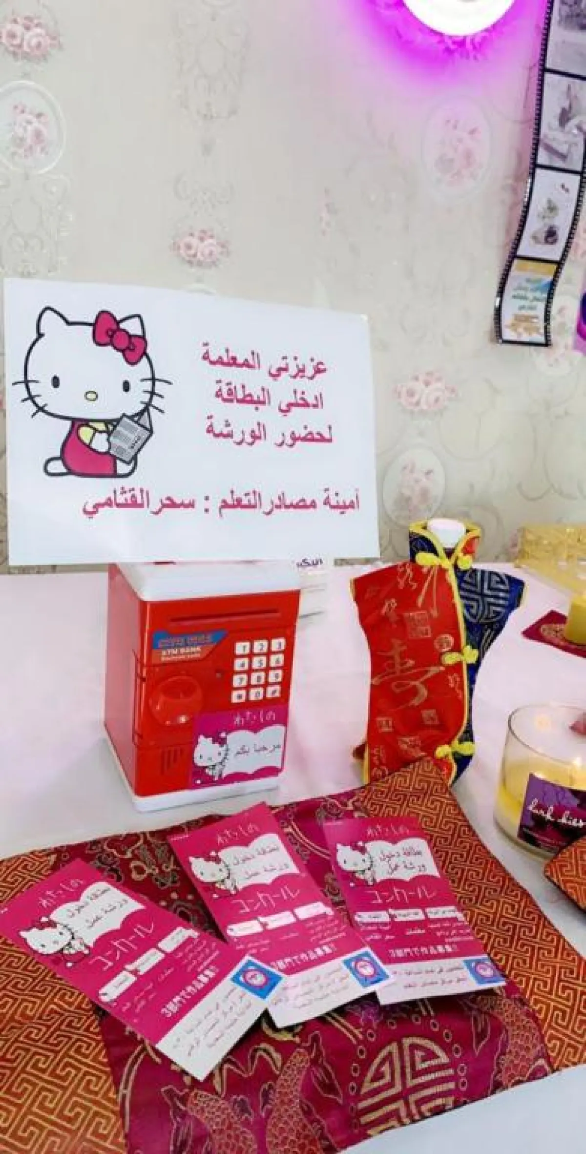 يذكر أنّ قائدة المدرسة قدمت شكرها وتقديرها لأمينة المصادر على ما قدمته من ورشة عمل نالت إعجاب الجميع، مشيرة إلى ما تحظى به مدارس المحافظة من اهتمام مباشر من مدير تعليم الطائف لدعم الجهود المبذولة من الطالبات والمعلمات لتوفير بيئة تعليمية مناسبة.