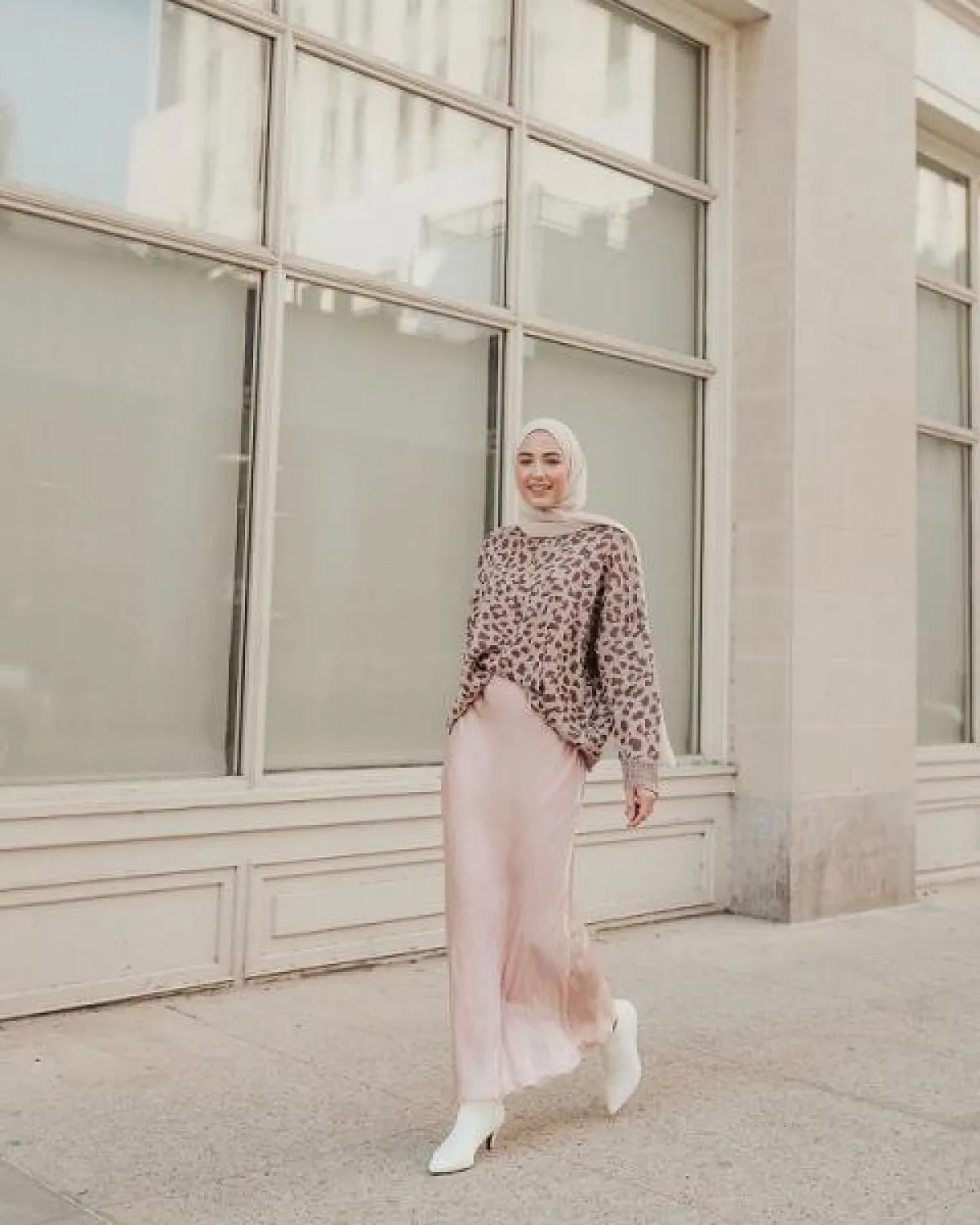 إن كنت ترغبين في تنسيق بلوزة بنقشة الفهد لتنسقي طلة عصرية باحدث نقوشات الموسم، لا تتردي في تنسيق تنورة باللون البيج واختاري الحجاب بنفس اللون. بالتأكيد سيكون اللوك الخاص بك غير تقليدي على الإطلاق.