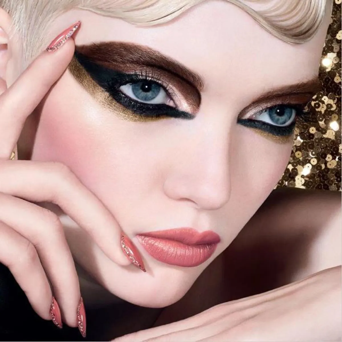 أمّا لوحة المكياج "الاحتفال باللون الذهبي" Celebrate in Gold فهي تزخر بالأناقة الساحرة، وهي تجمع الألوان الذهبية مع تدرّجات الرمادي والأسود التي تعكس التأثيرات الدخانية واللمسات المسائية المتقزّحة للحصول على إطلالة لا تُضاهى في عيد الميلاد.