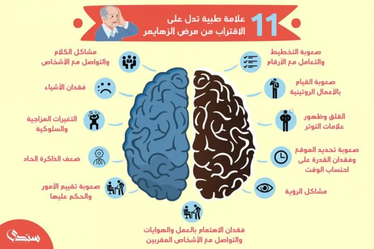 ولأن اكتشاف المرض في مراحله المبكرة ورسائله التحذيرية الجسدية والنفسية على المرضى المستقبليين حتى قبل الدخول في الشيخوخة يسهم في علاج أعراضه؛ فإن التقرير التالي يحتوي على 11 علامة تحذيرية وخطرة قد تدل على أن الإصابة بمرض ألزهايمر أصبحت مسألة وقت فقط.