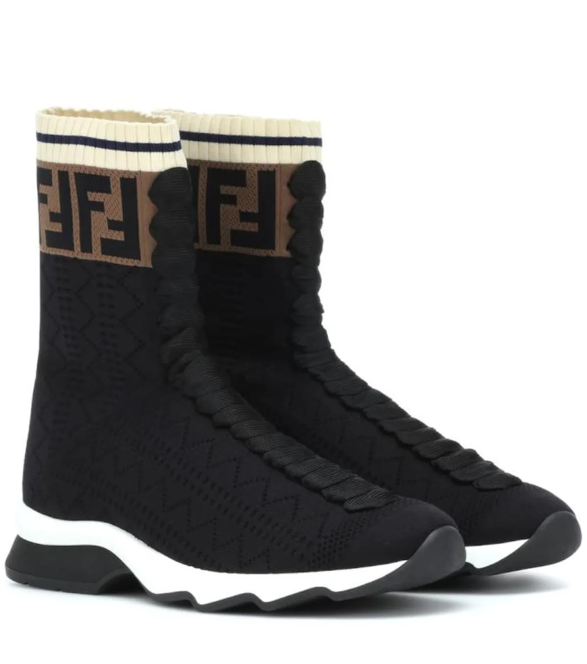 بالطبع لا يمكن الاعتماد بشكل دائم على الأحذية ذات الكعب العالي أو المتوسط، فهي تتعب الجسم أثناء العمل أو في خروجات الجامعة، ولهذا السبب ركزت بعض الدور العالمية على تقديم أحذية عملية بسيطة تناسب إطلالات كل يوم، فاختارت Fendi حذاء باللون الأسود بتصميم نص جزمة، تميز بشعار Fendi باللون البني في قسمه العلوي.