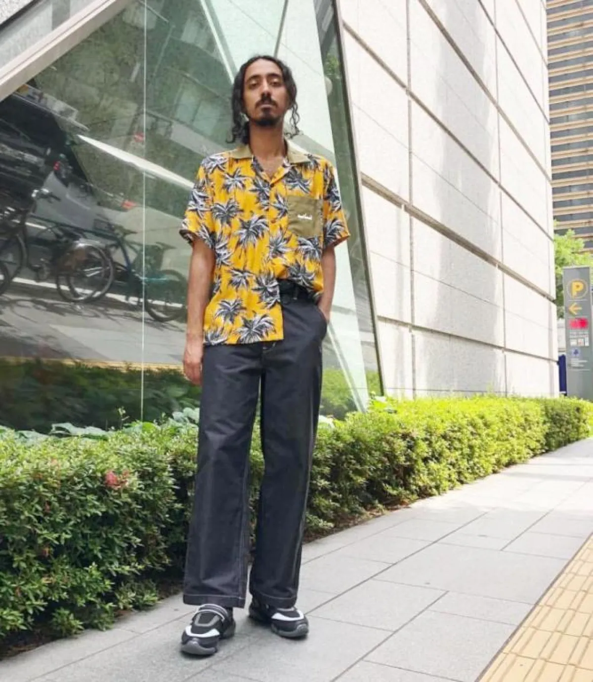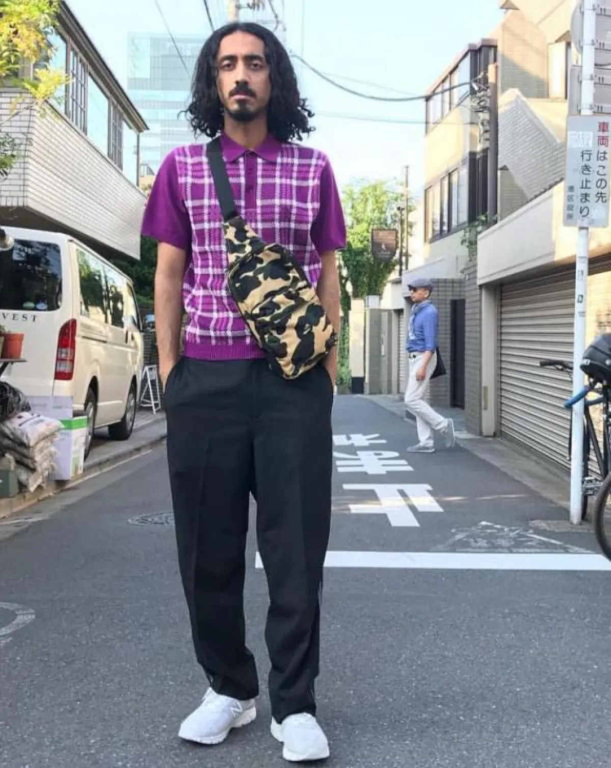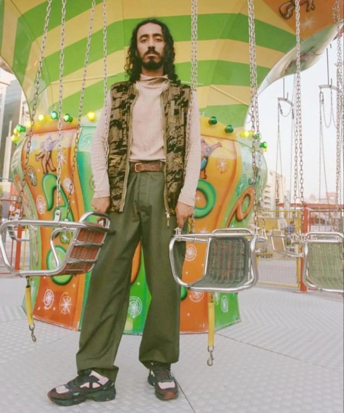 كما ظهر بجاكيت كحلي مزين بالزهري من الأعلى، وجاكيت أسود جينز، وآخر كحلي، وتميز ببنطلوناته الواسعة باللون البيج أو الأسود أو الأخضر، وأخرى عصرية باللون البيج وزينت من الركبة بمربع كبير أسود، ويرتدي أيضًا بنطلونات الجينز سواء باللون الأزرق السائد أو الأسود الواسع، والشورتات المتنوعة باللون الأبيض أو الزهري.