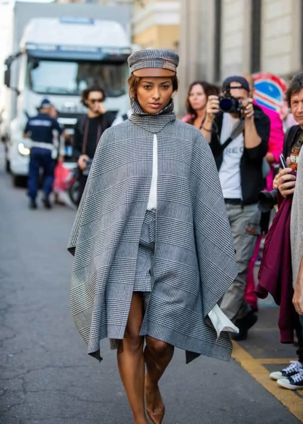 شوهد أيضا بالطو الكاب على عدد كبير من فتيات الموضة والمشاهير حتى الآن هذا الموسم.