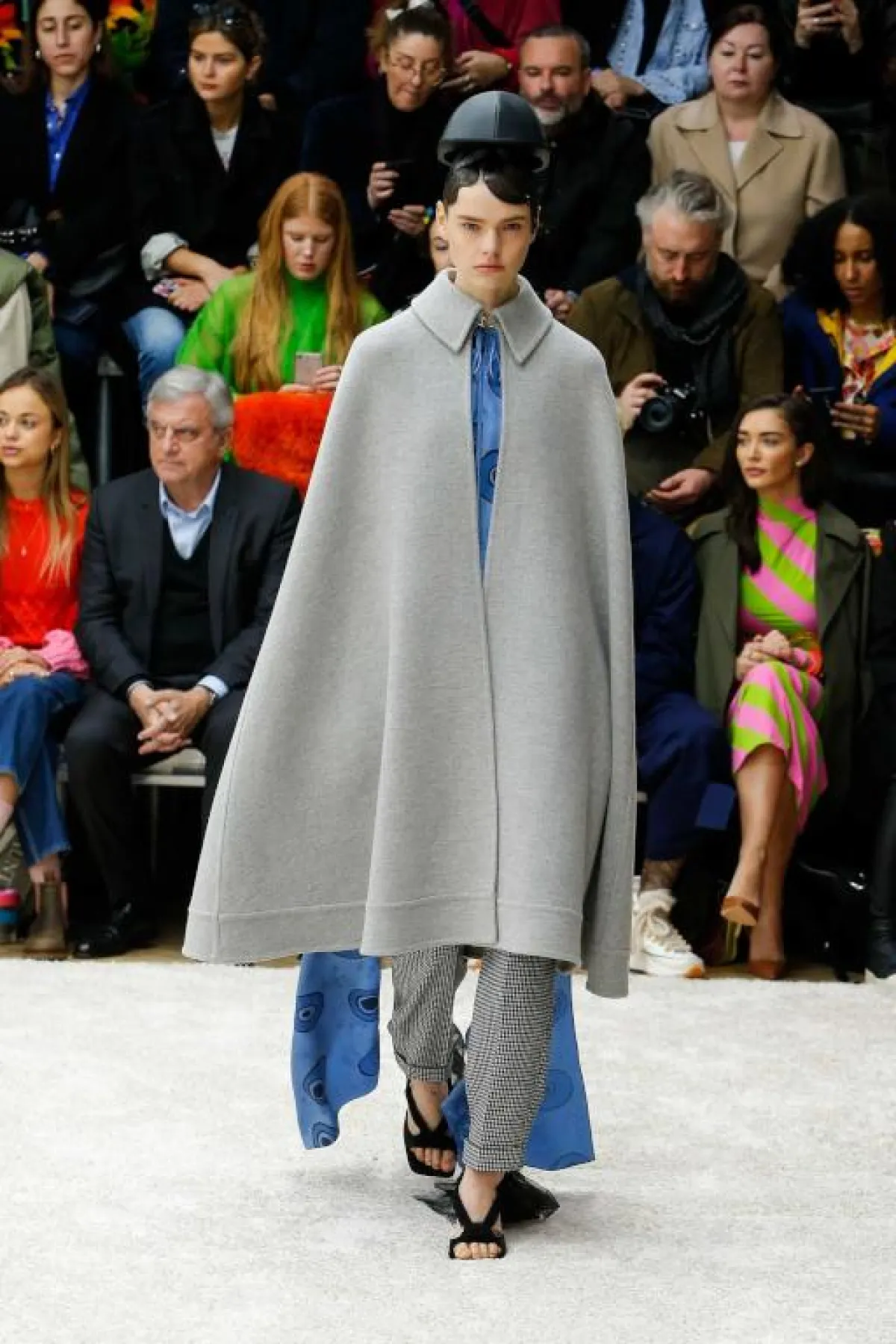 قدم دار "جي دبليوأندرسون" J.W. ANDERSON بالطو الكاب من الصوف بألوان محايدة سهلة الارتداء، و تم تنسيقها مع بنطلون أنيق وصندل مثالي للرياح الخريفية.