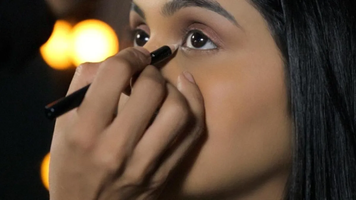 2. تحت الحاجب: يمكنك الاستفادة من قلم الكحل البيج لإضاءة المنطقة الواقعة تحت الزاوية الخارجية من الحاجب وفوق العين.